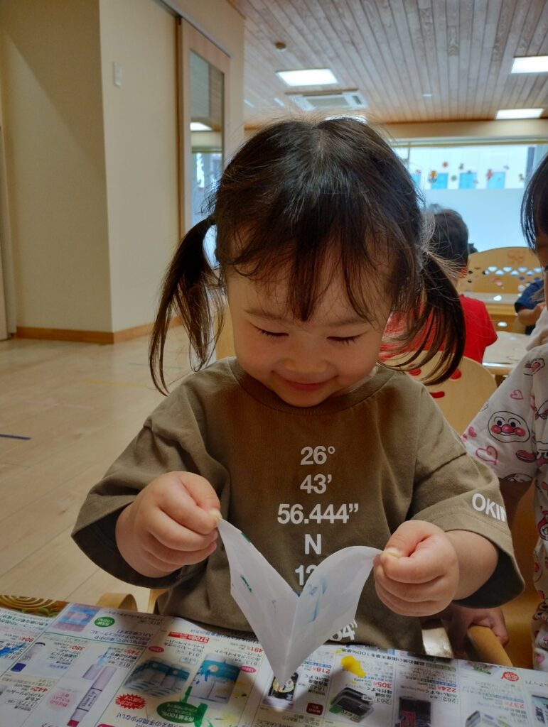 画用紙を開く時もワクワク😊綺麗に色が付いていてとっても嬉しそうです❣️