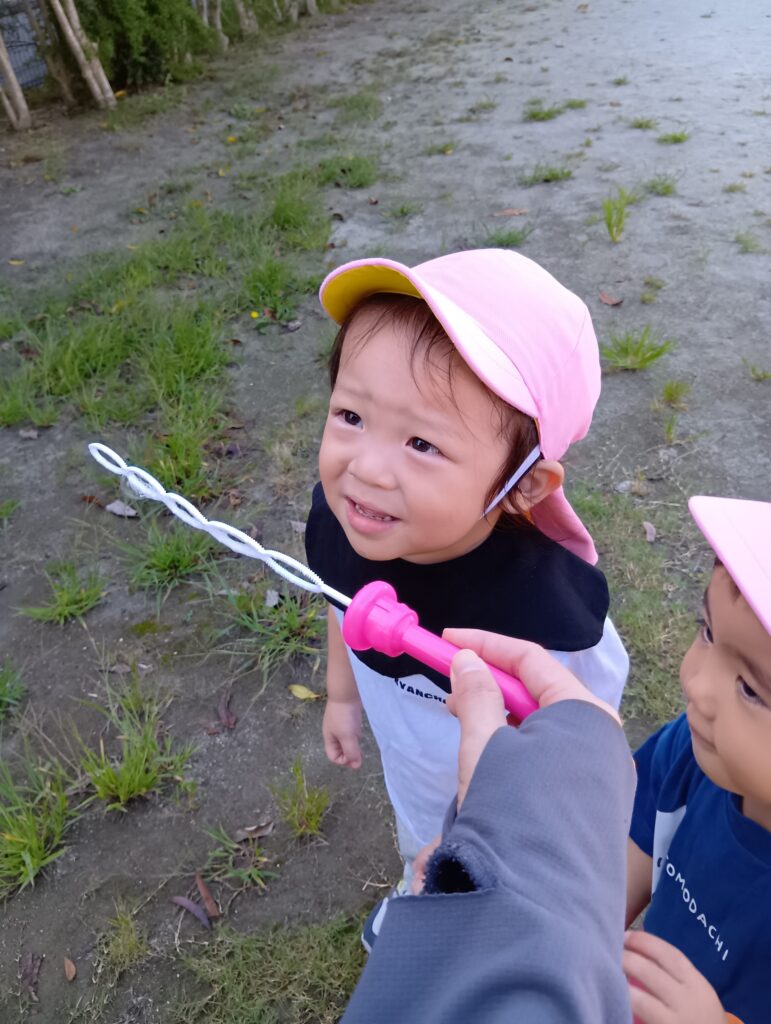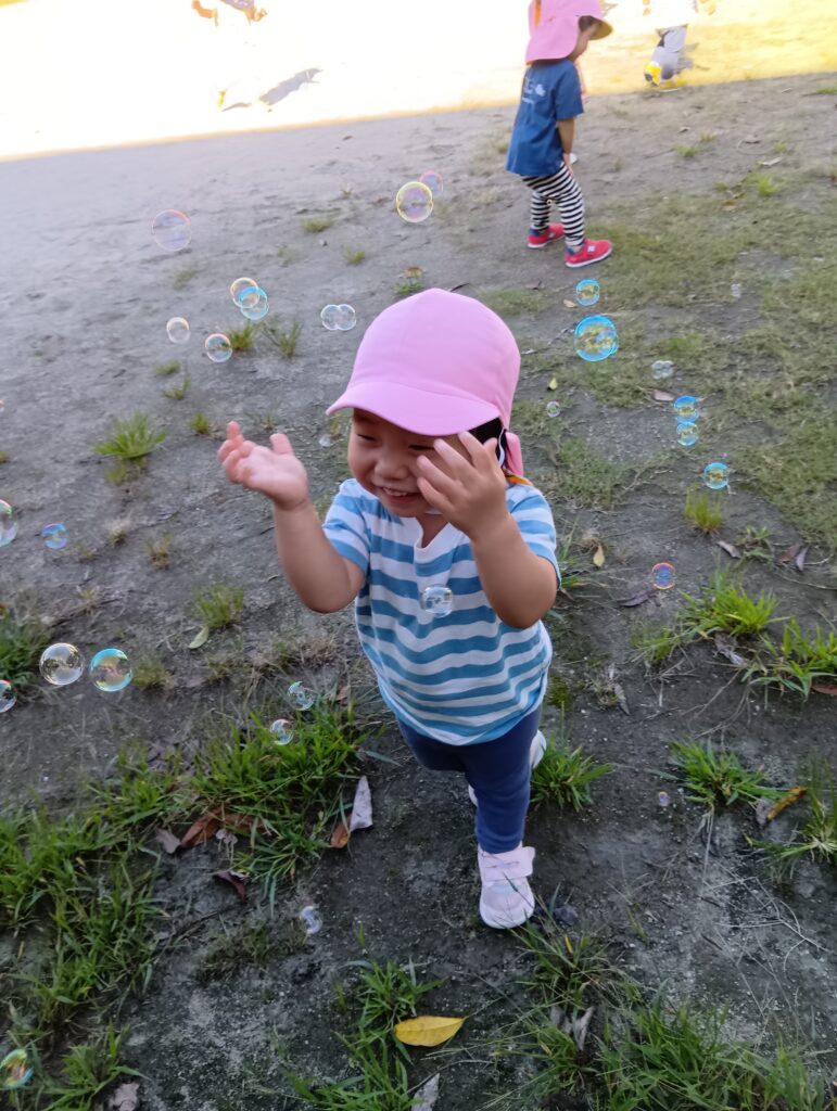 「待て待て~」「しゃぼん玉、みーつけた!」と声が聞こえてきそうです👀✨