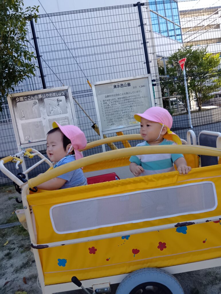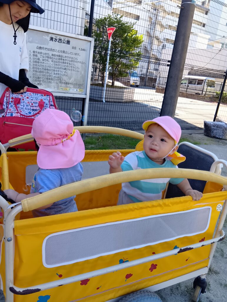 0歳児さんは散歩車から景色やしゃぼん玉を楽しんでいます🎶