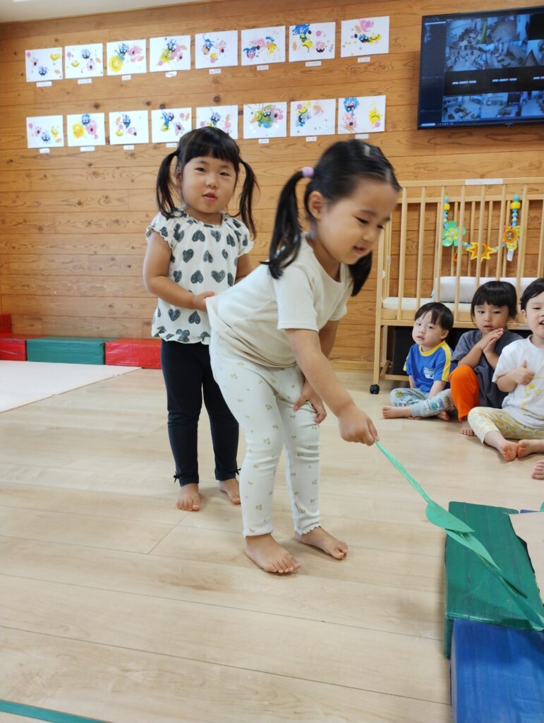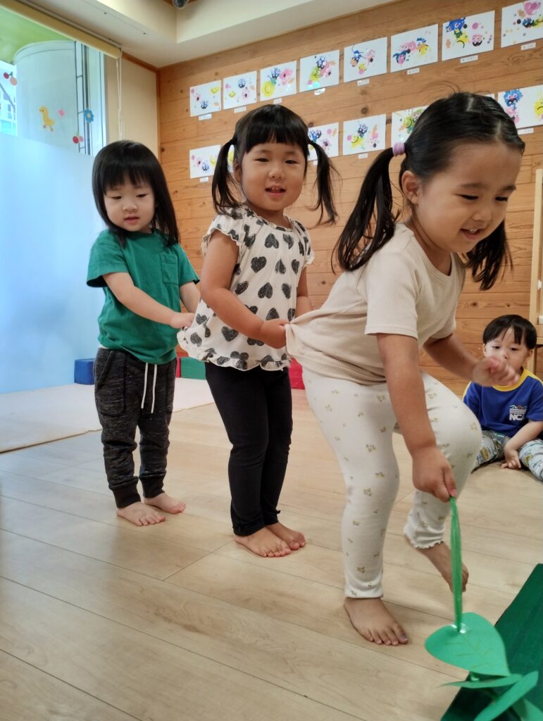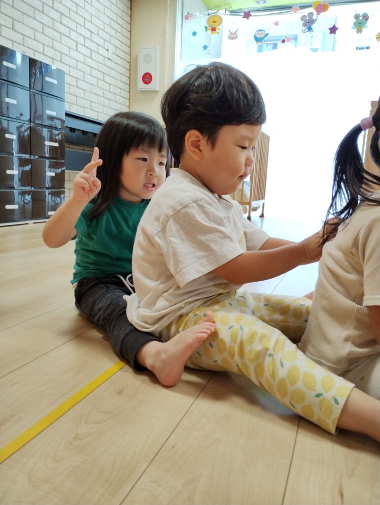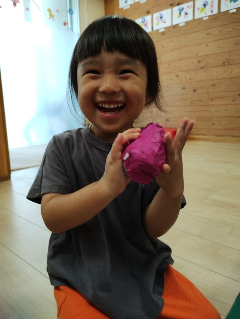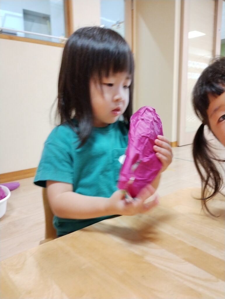 2歳児は保育室で昨日のさつまいもを使って焼き芋ごっこをしました。せっかくだから昨日した芋掘りももう一回する事に!