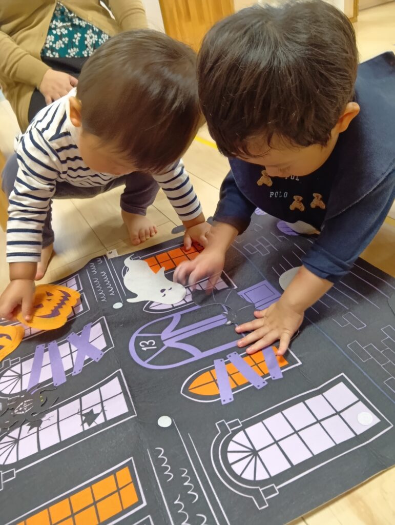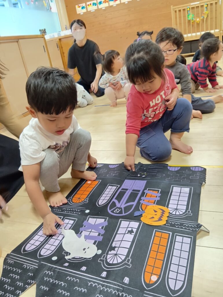 マーク貼りでは「どこに貼ろうかな~」と考えながらオバケやカボチャを貼っています🌟