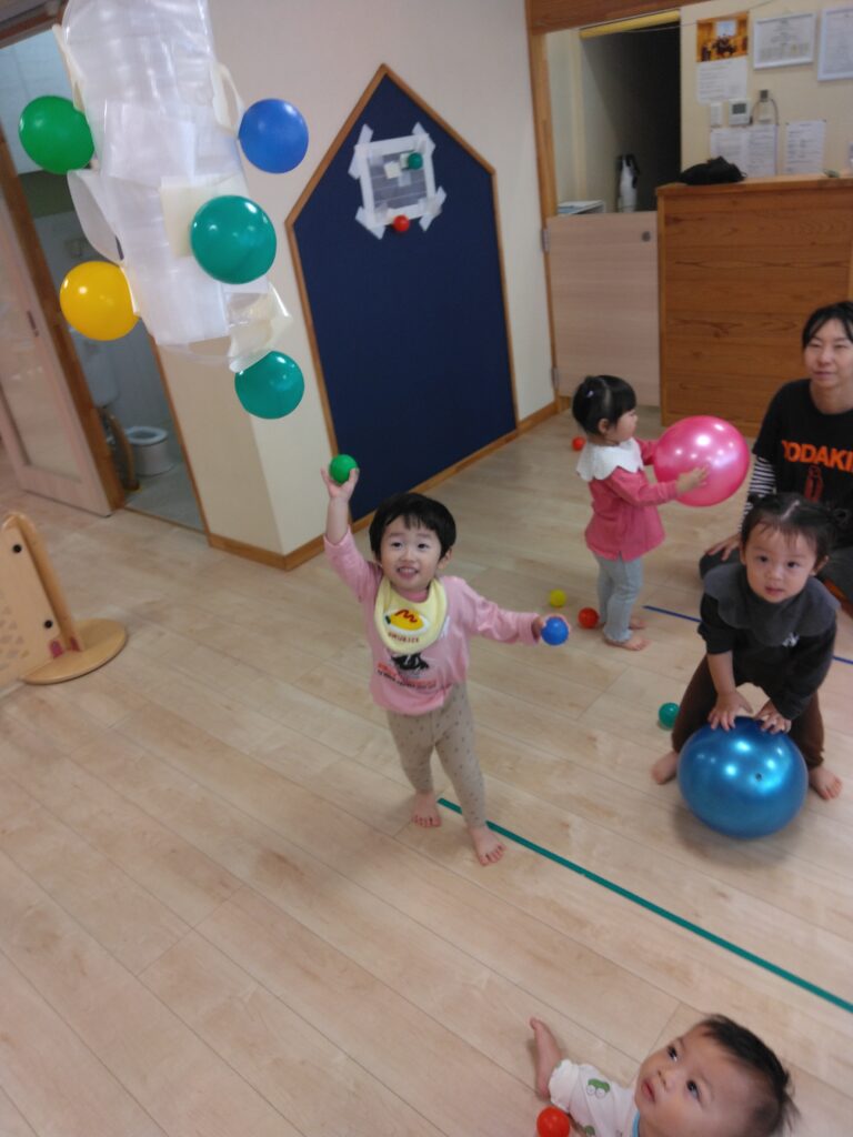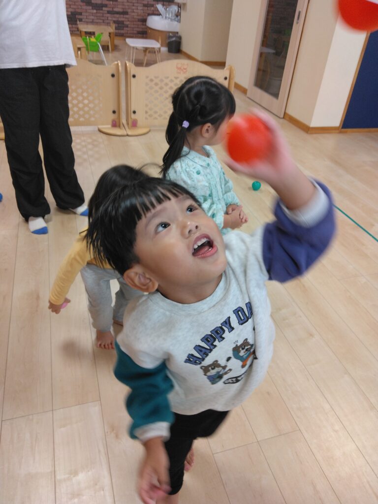 0歳児さんもボールに夢中⭐️投げたり、目で追ったり、楽しそうでした✨