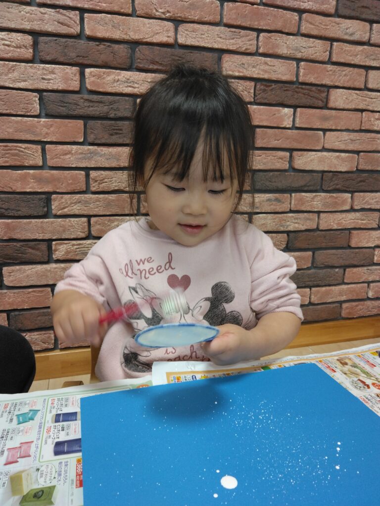 歯ブラシとポイを擦り合わせると、粉雪のように絵の具が散ってとても綺麗でした🌨️