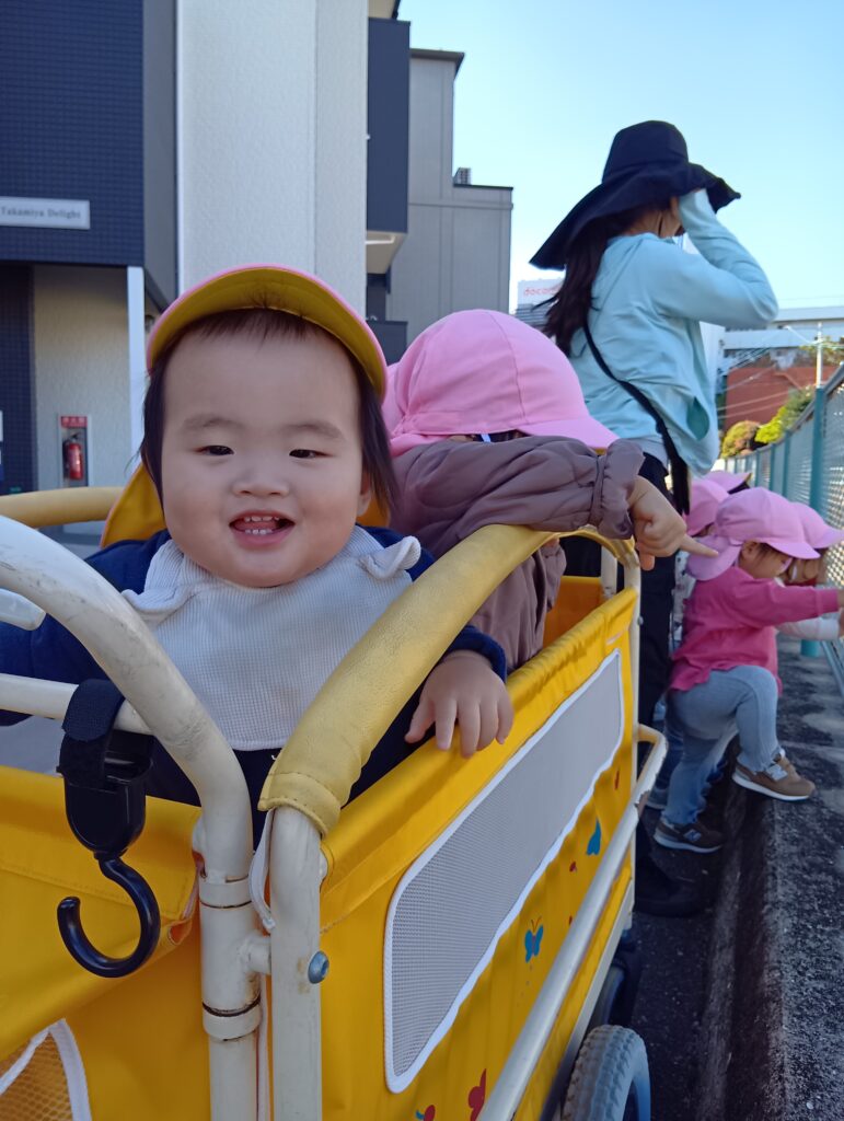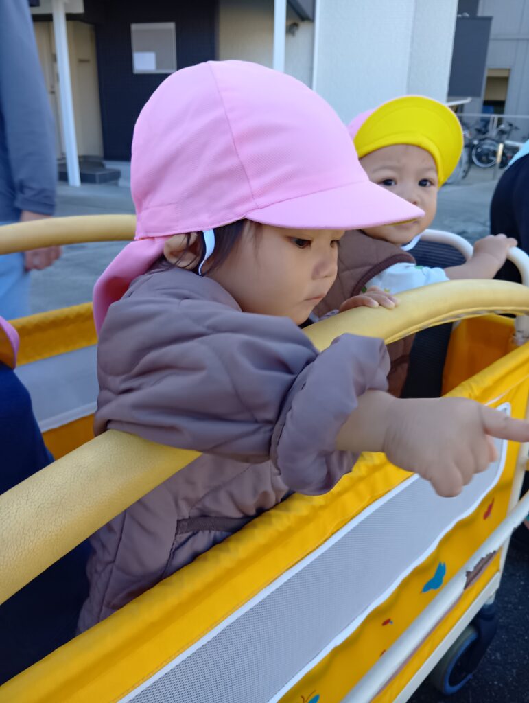 1歳児さんと0歳児さんは散歩に行きました。