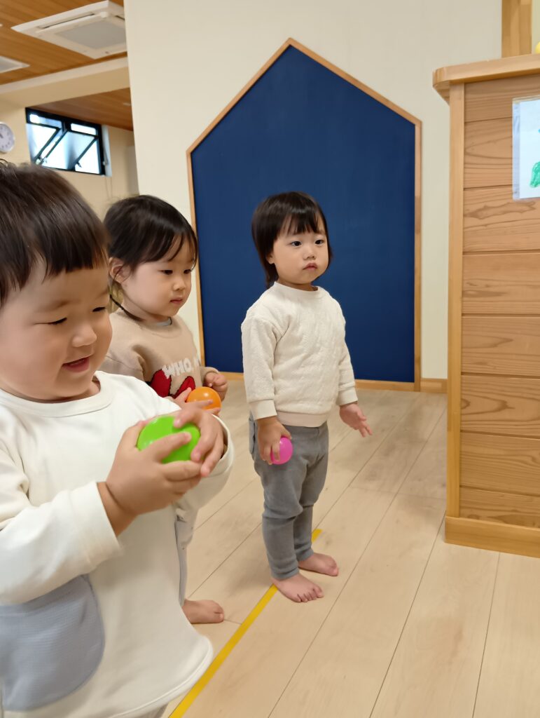 ボールでカードを倒して、倒したカードの絵を英語で言い、ハイタッチをして楽しんだ子どもたちでした❣️✨️