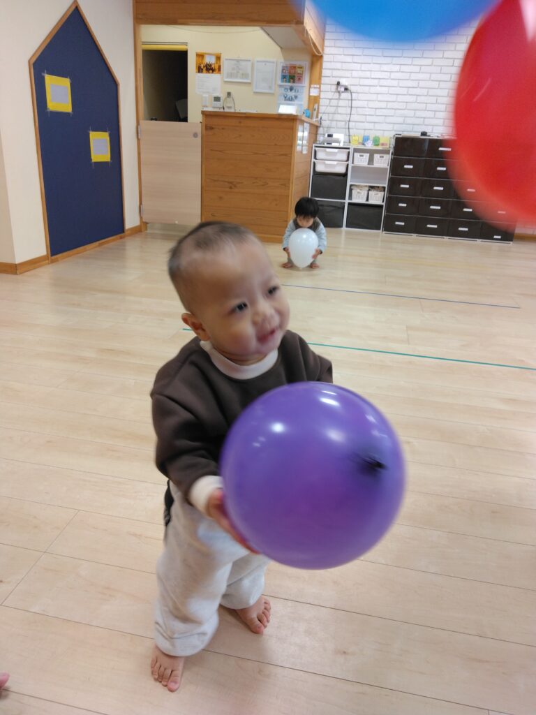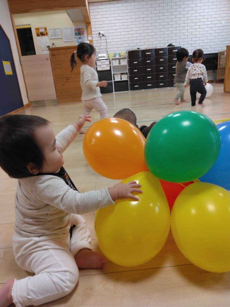 0,1歳児さんも風船に興味津々🎈
