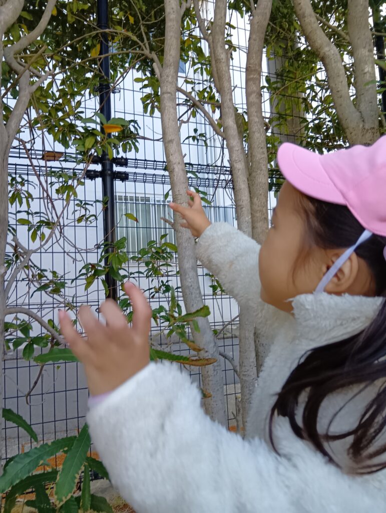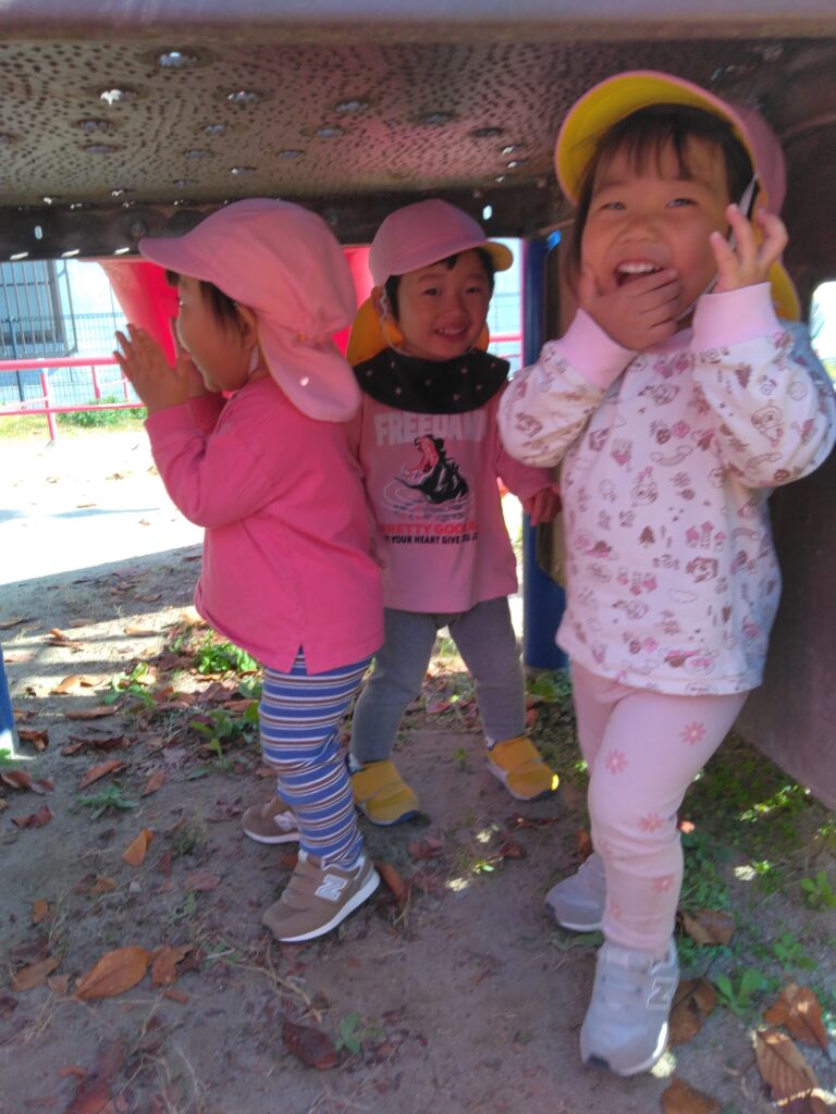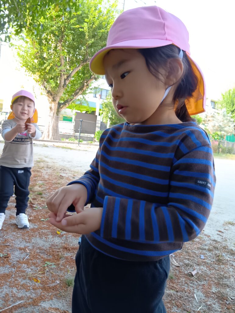 公園の広場の方で遊びました。「お花、なくなったね〜」と金木犀の変化に気づく子どもたち。
