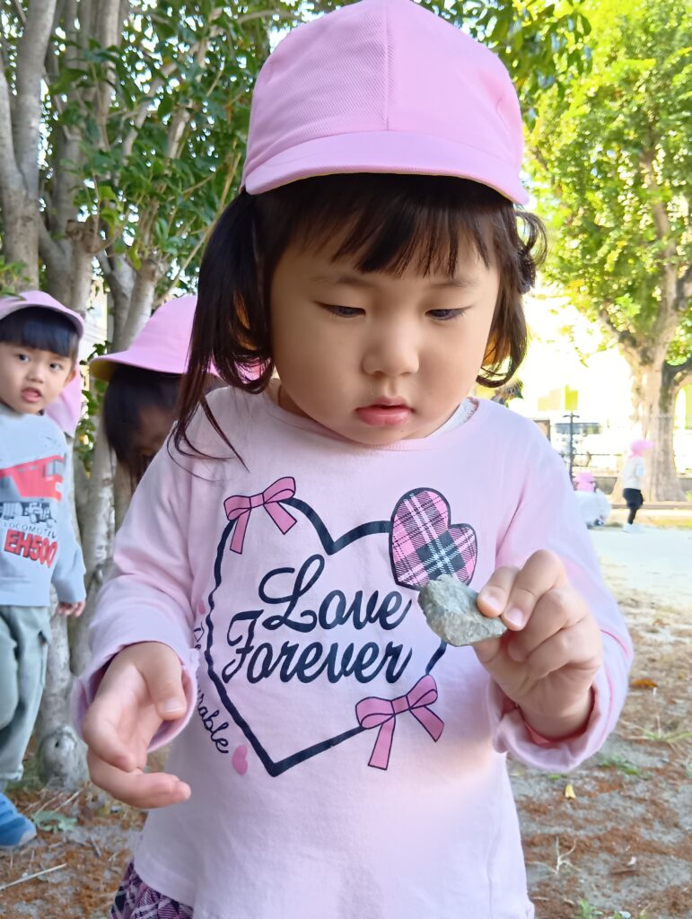 木の根元を見れば葉っぱや小石が落ちているので、夢中になって拾っていました🍂