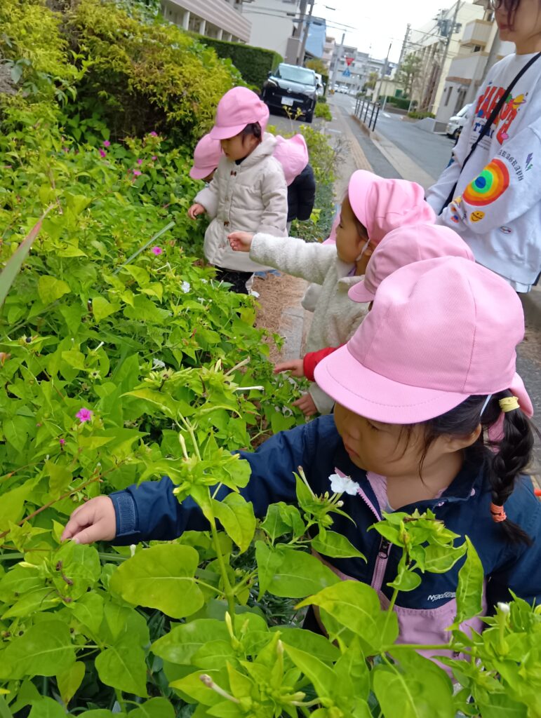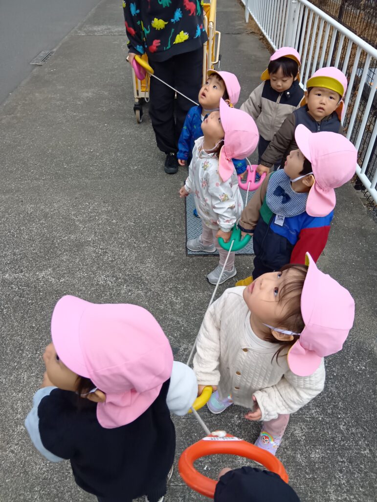 急に冬のような寒さになりましたね🌬️学年ごとに交代で散歩に行きましたが、風がビューンと吹くと「キャー!」「さむ〜い!」と笑顔の子どもたちです✨
