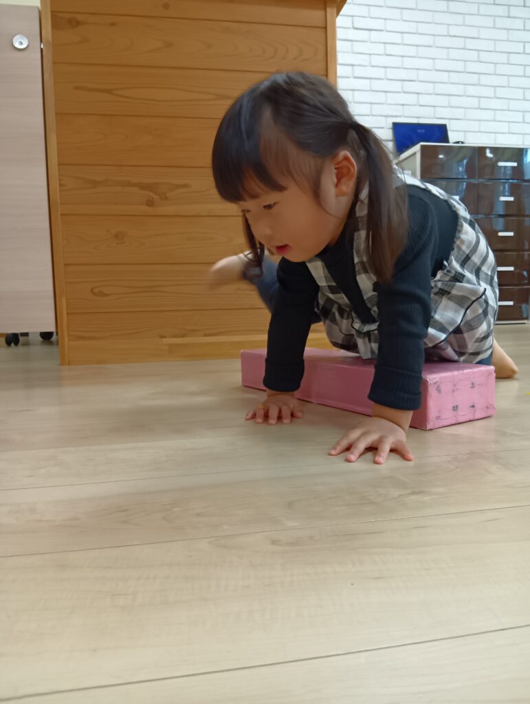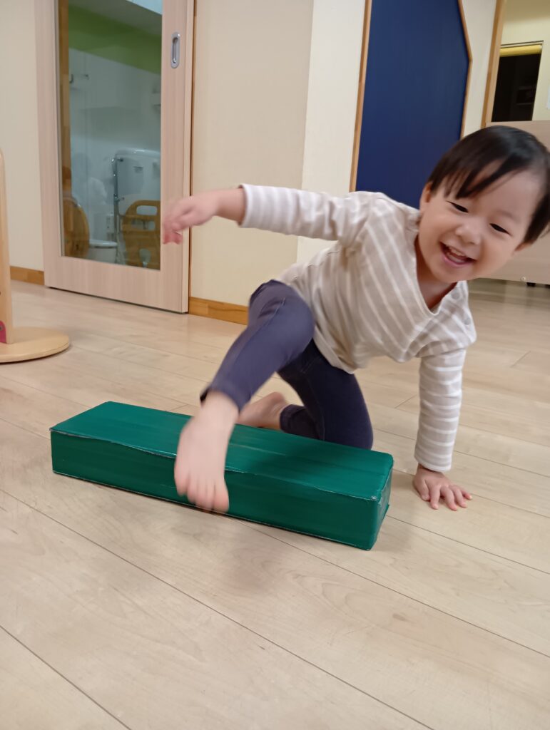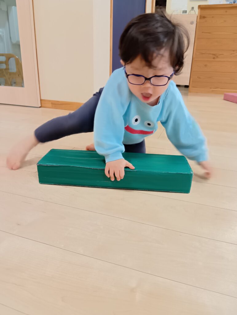 2歳児さんはハイハイやジャンプで段差を越えて運動遊びをしたり、