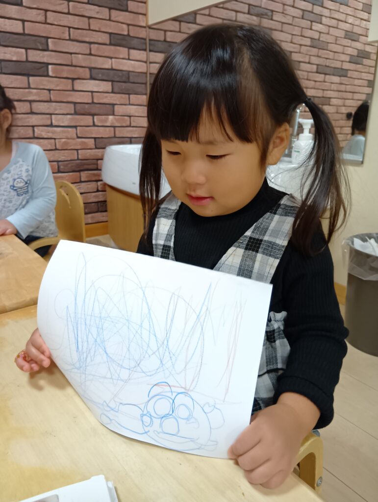 2歳児さんは見たあられを絵に描いてみました!あられをどう表現しようかなと悩みながら描いていました😍❣️