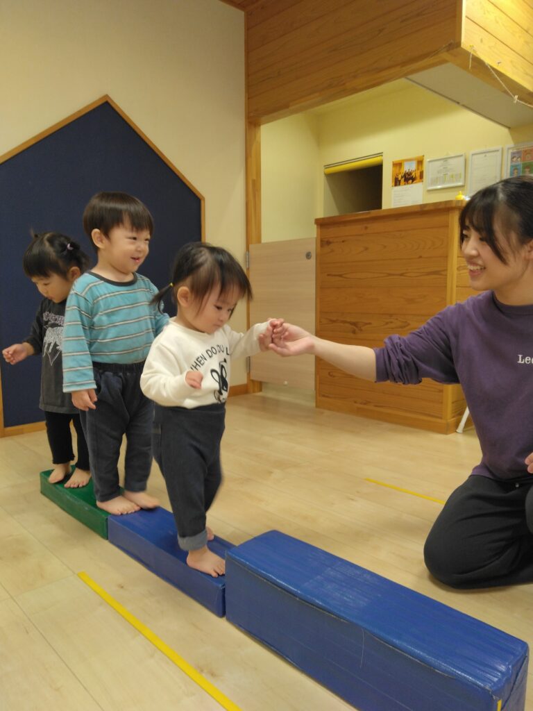 その後の運動遊びでは一本橋を上手に渡って繰り返し楽しむ姿が見られました✨