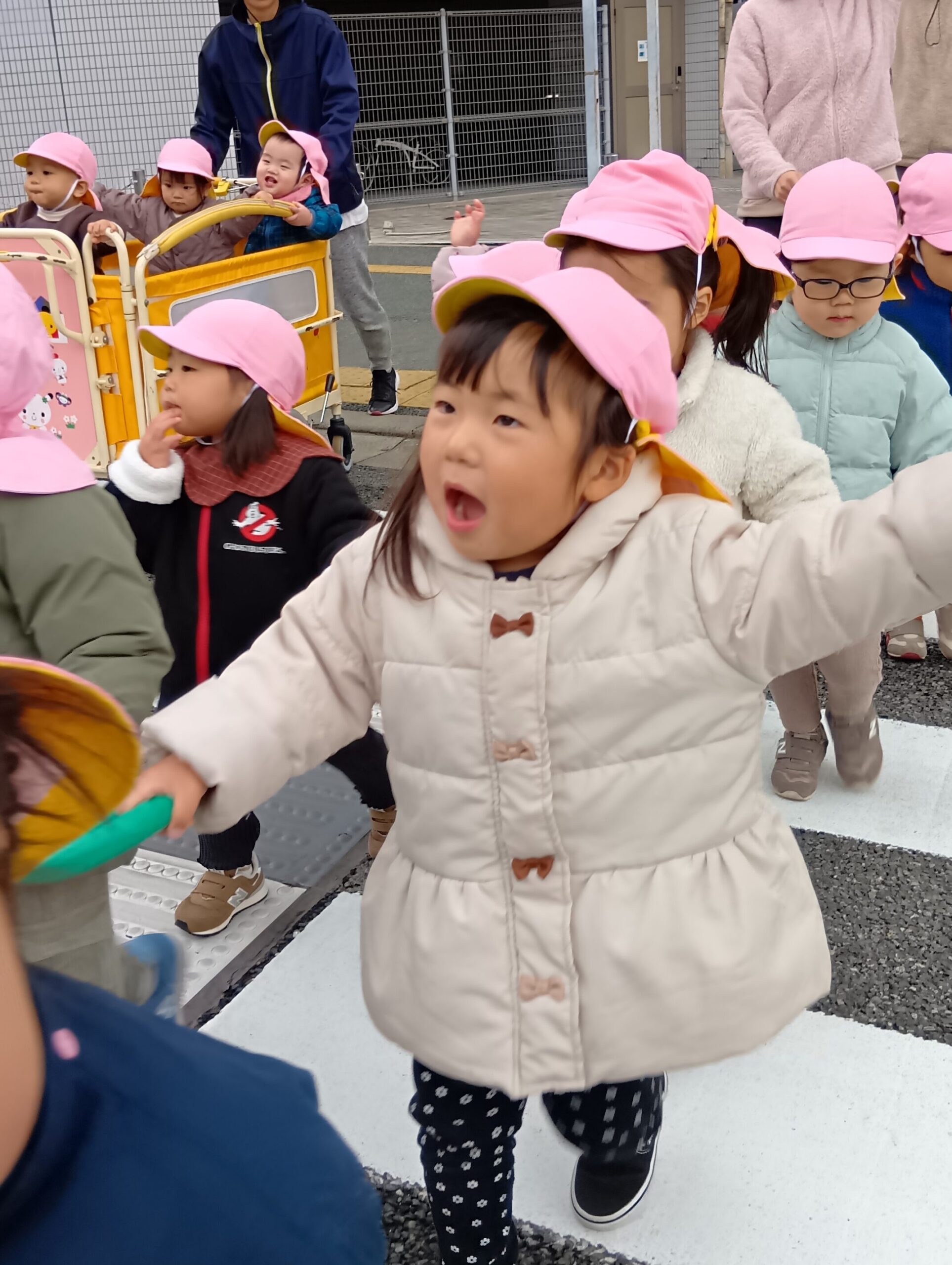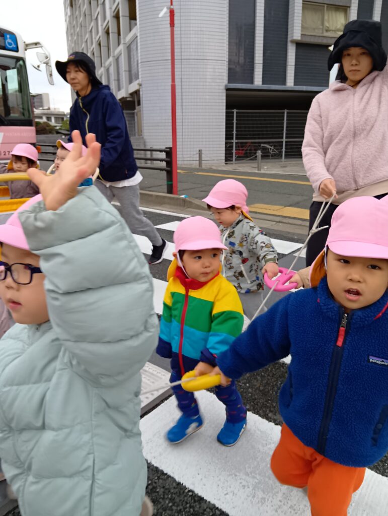 今日は磐瀬公園に行きました✨公園に行くと知るととても嬉しそうな子どもたちです😊「信号渡りまーす」と声をかけると自然に手を上げる子が増えてきています🙌