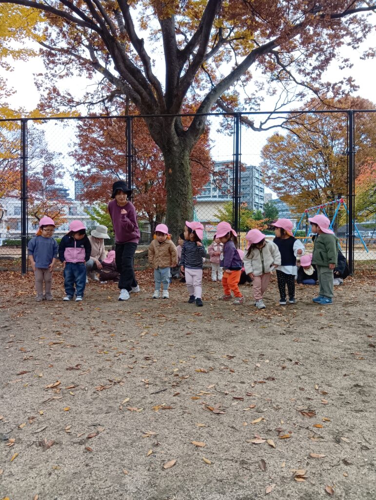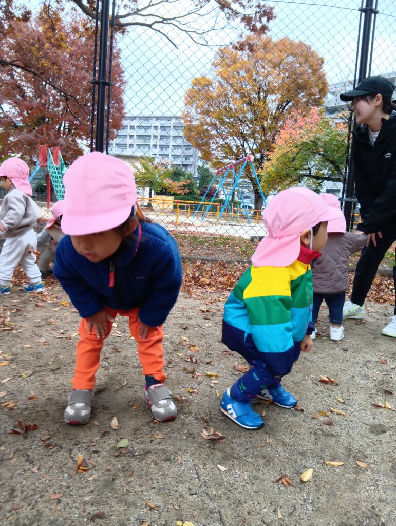 公園では今年度初のマラソンをしました。まずは準備体操です。