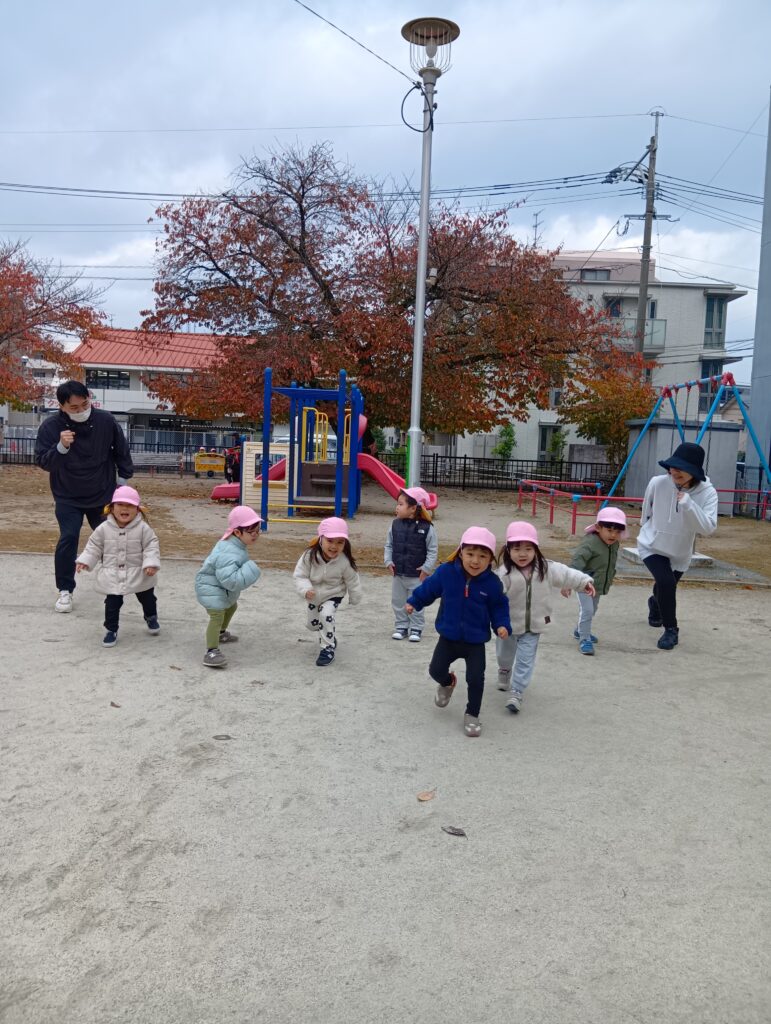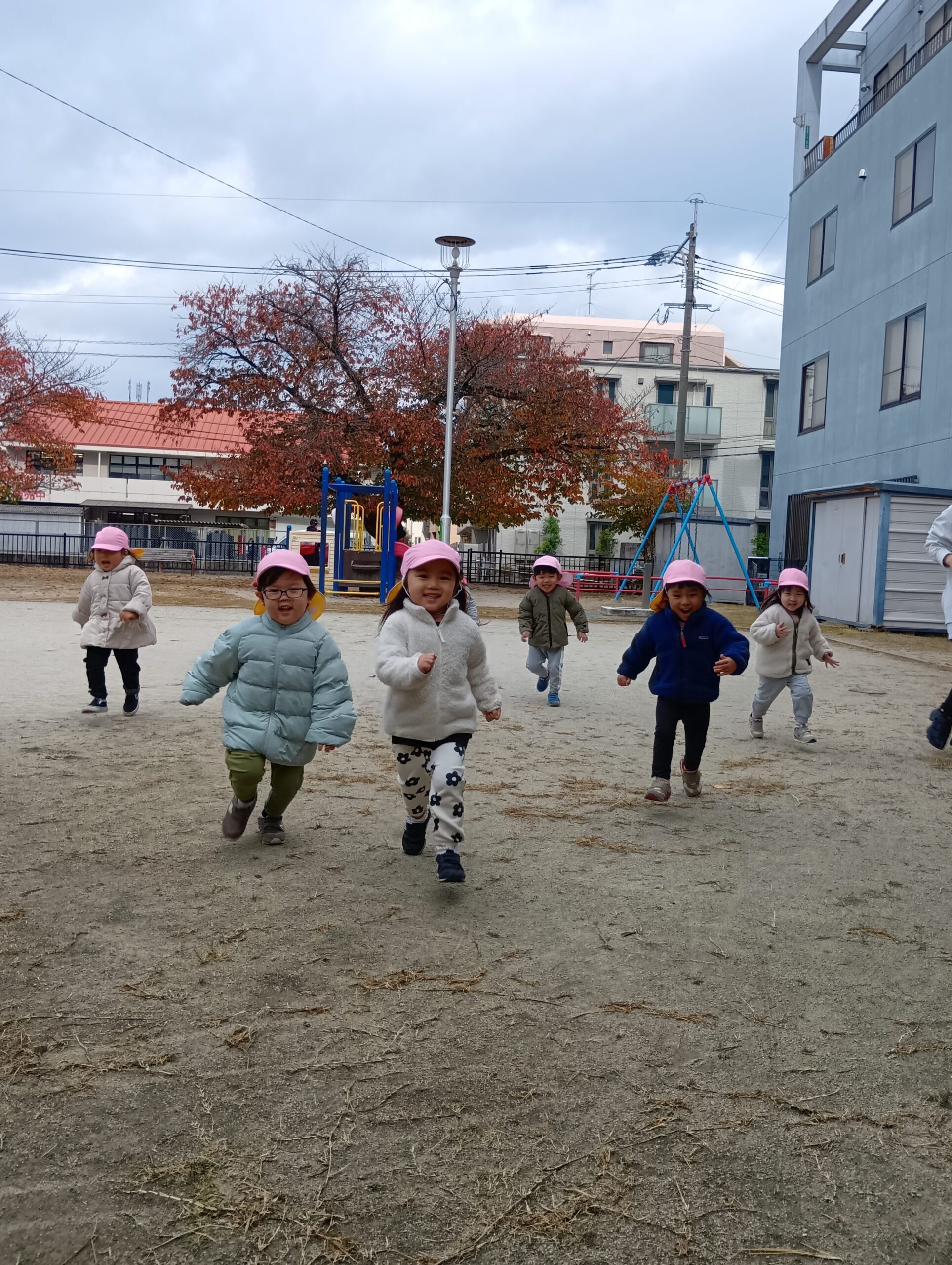 保育者も一緒に競争です!一番目になるぞ!とゴールを目指し、達成感たっぷりの表情で走り終える子どもたちでした😊✨