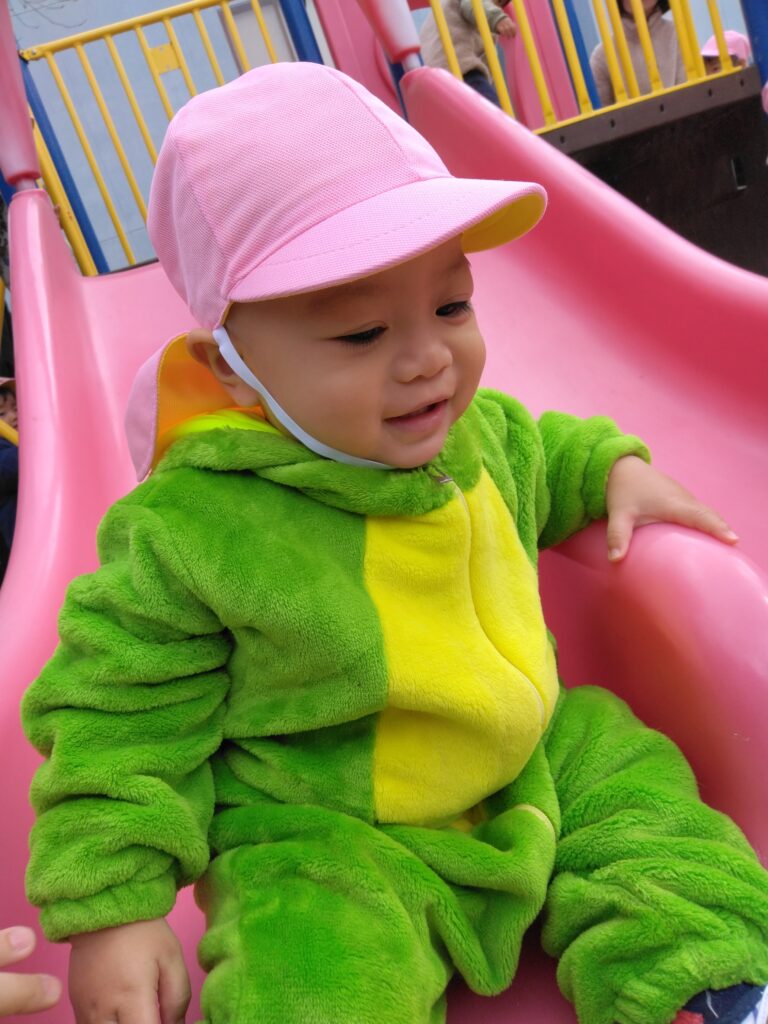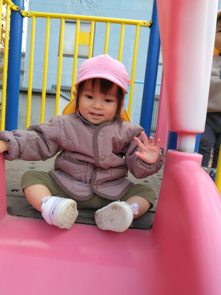 0歳児さんも思い思いに滑り台に挑戦したり、石を見つけたりと楽しんでいます🥰