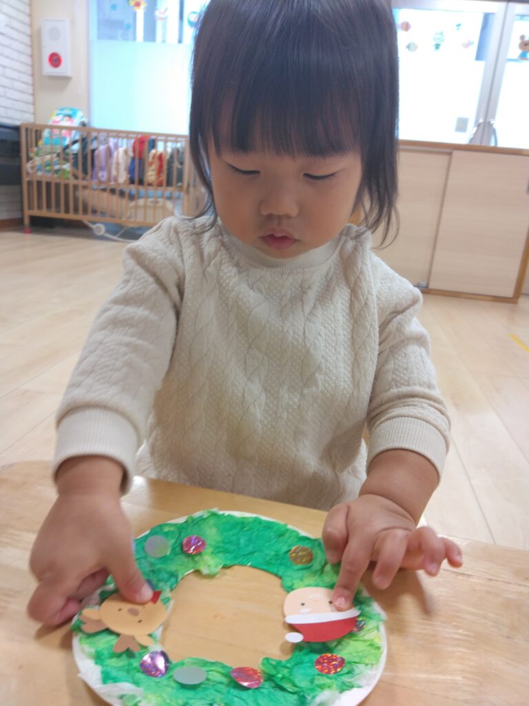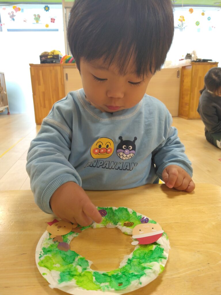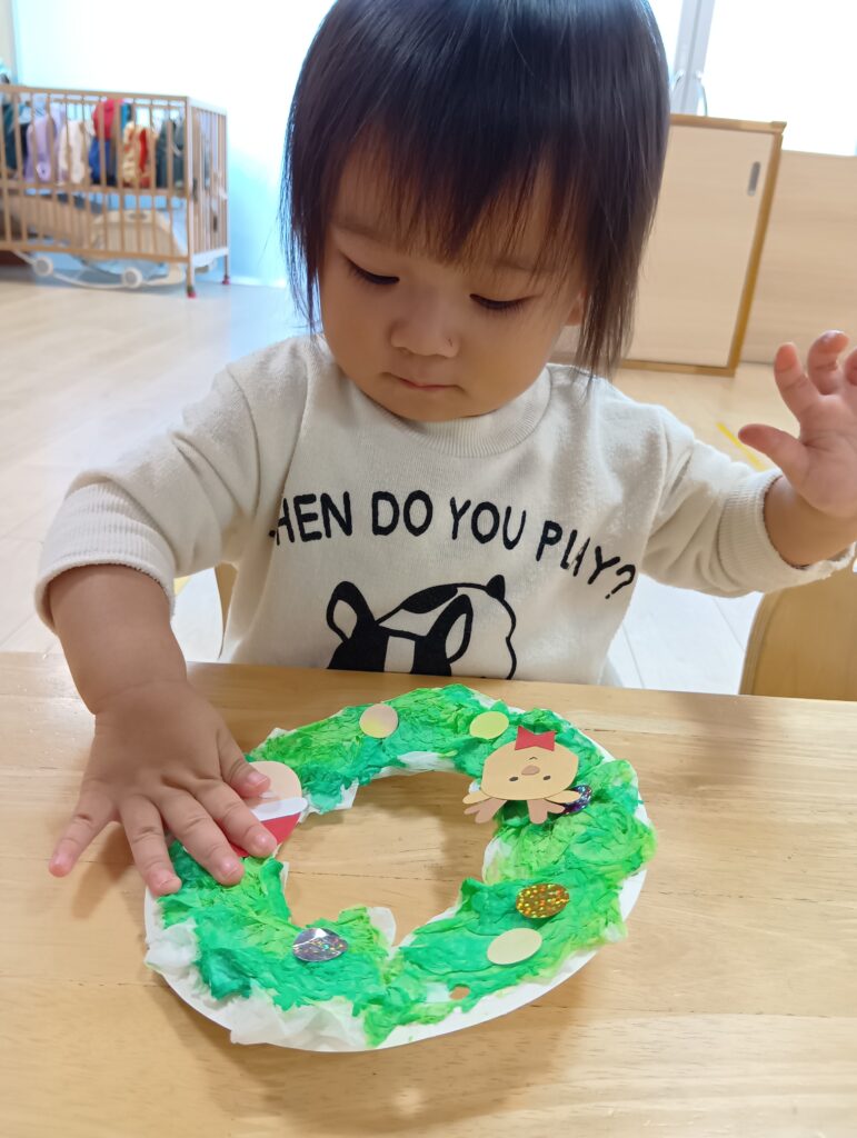 クリスマスリースの制作もしました⭐️とっても可愛いリースが出来上がってきています!完成が楽しみですね♥️