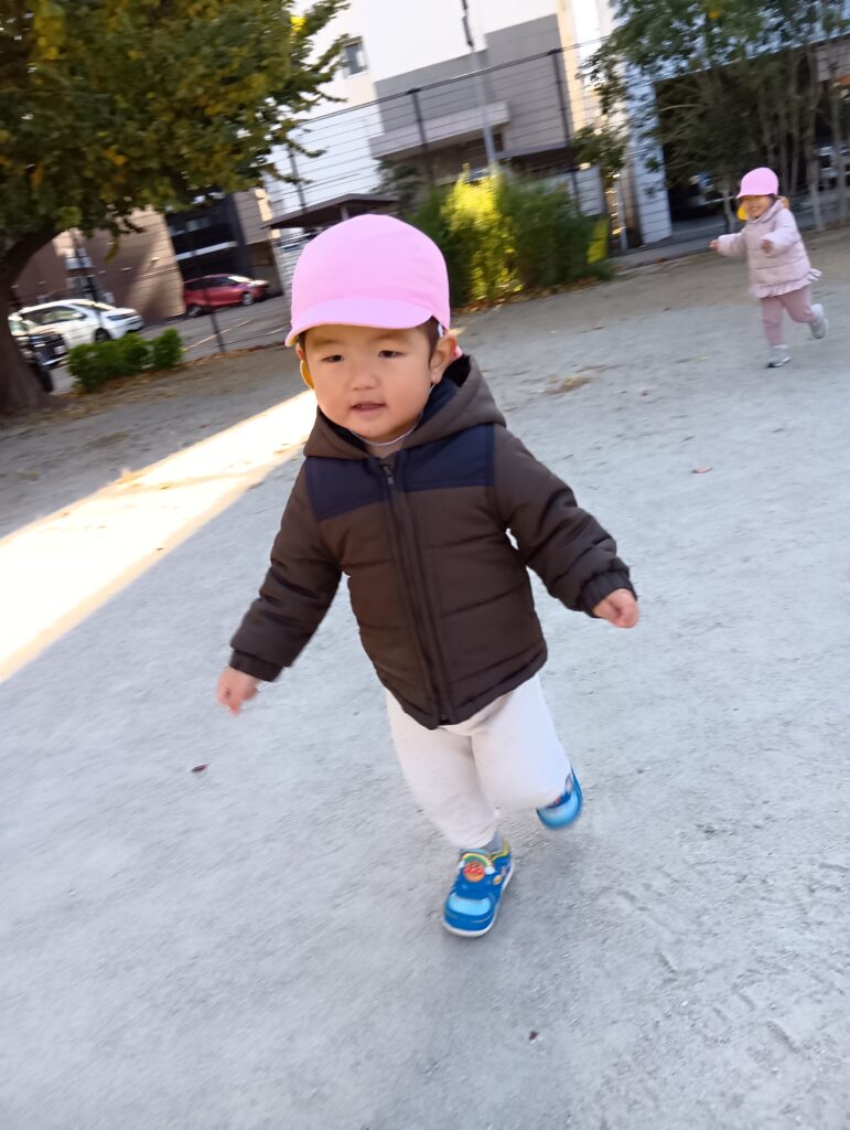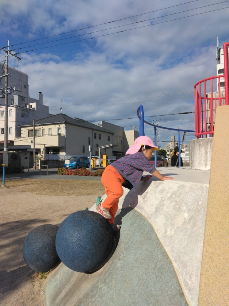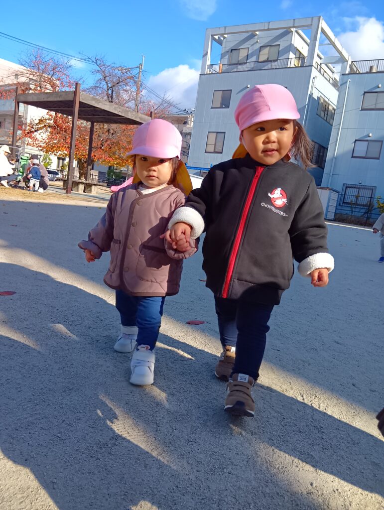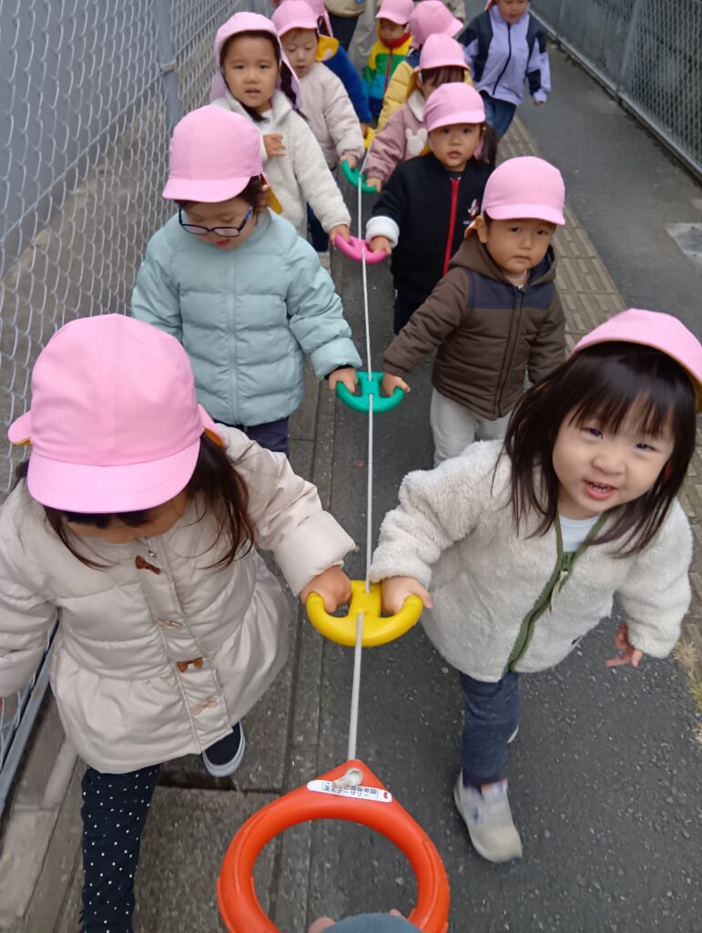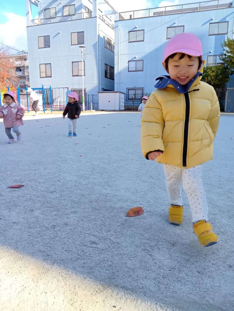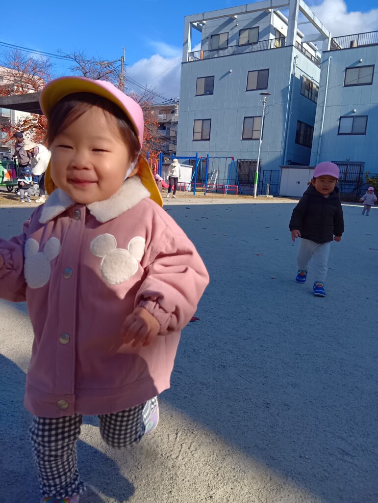 「滑り台しに行くよー!」と保育者が声をかけるとみんな大喜び😆♪