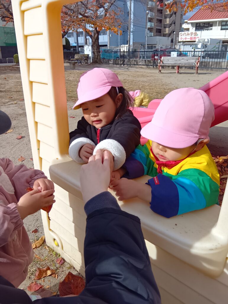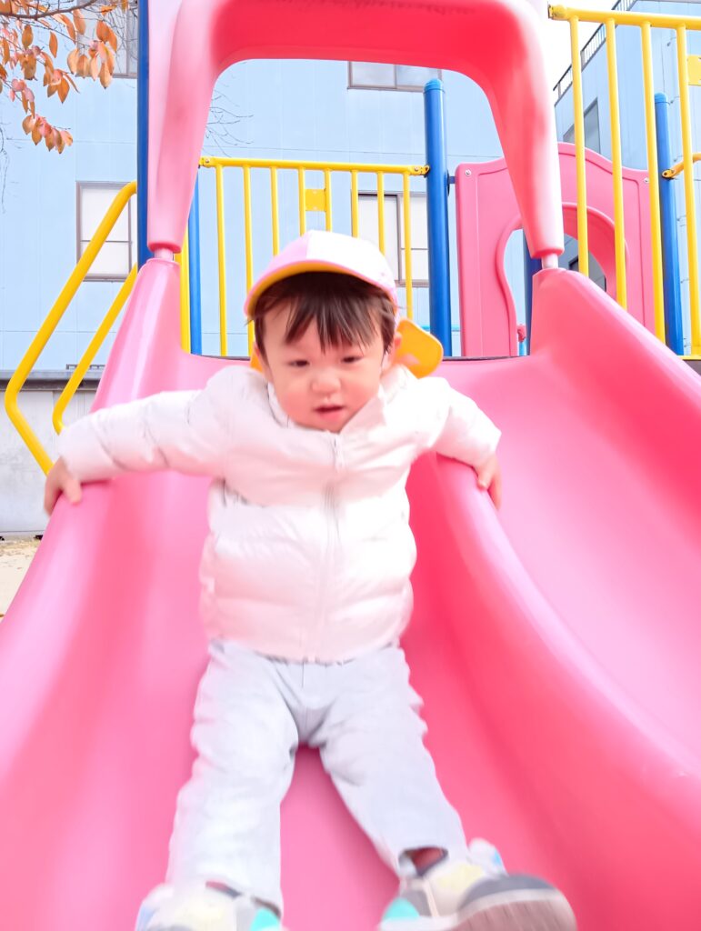 「一緒に滑ろう!」と保育者やお友達を誘って何度も楽しんでいました🤩