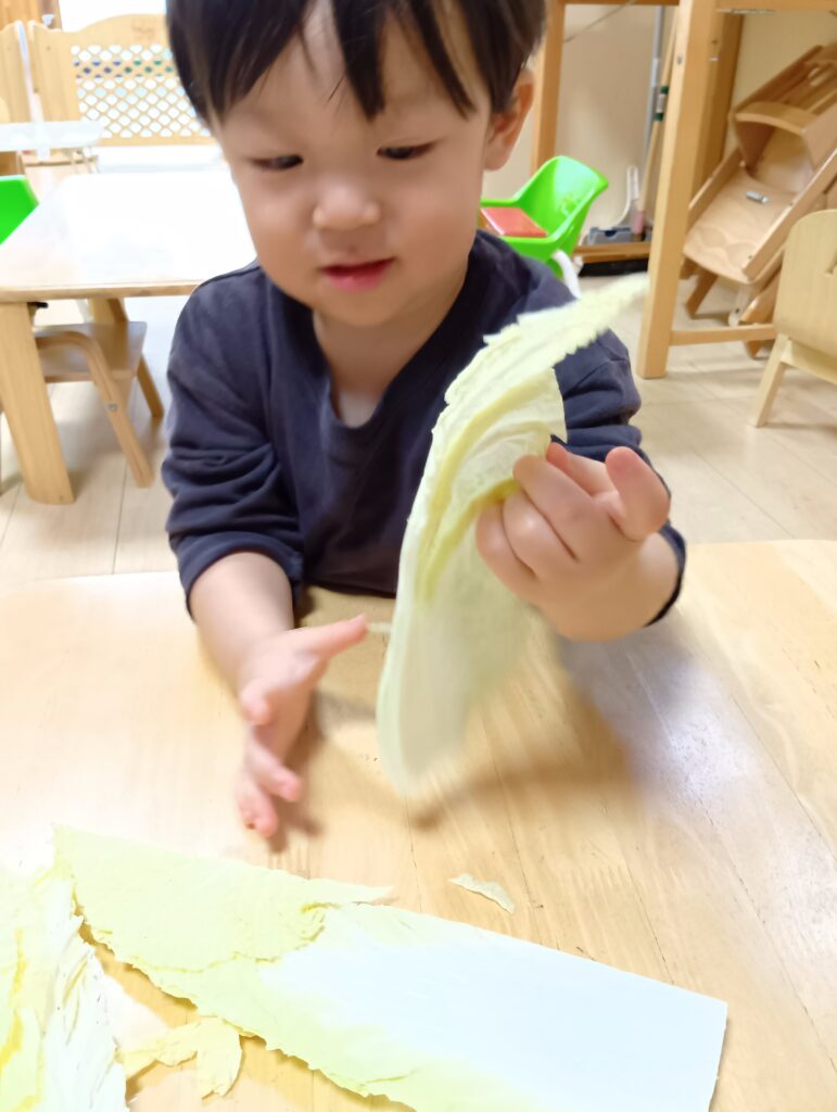 2歳児さんは力もあってか、硬めの芯もバリっと勢いよくちぎることができていましたよ☺️