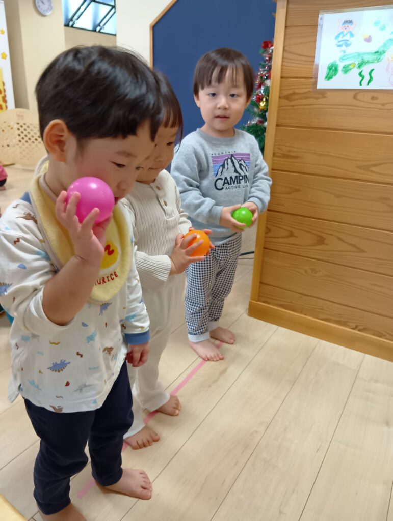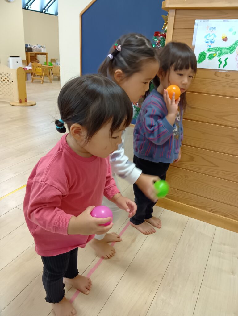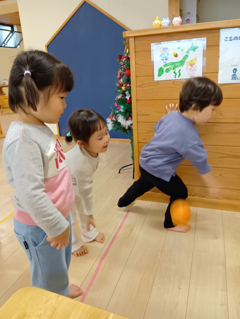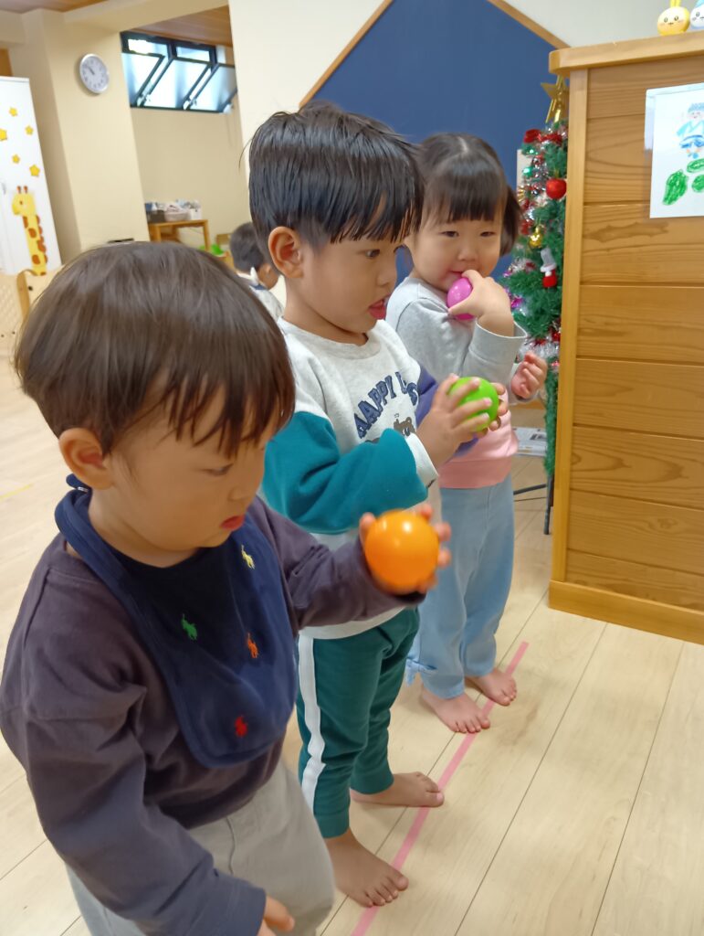 その後は英語教室がありました。「ベイビーシャーク🦈🎵」「ダディーシャーク🦈🎵」指や手、腕をしっかり動かしてサメの大きさを表現しています。