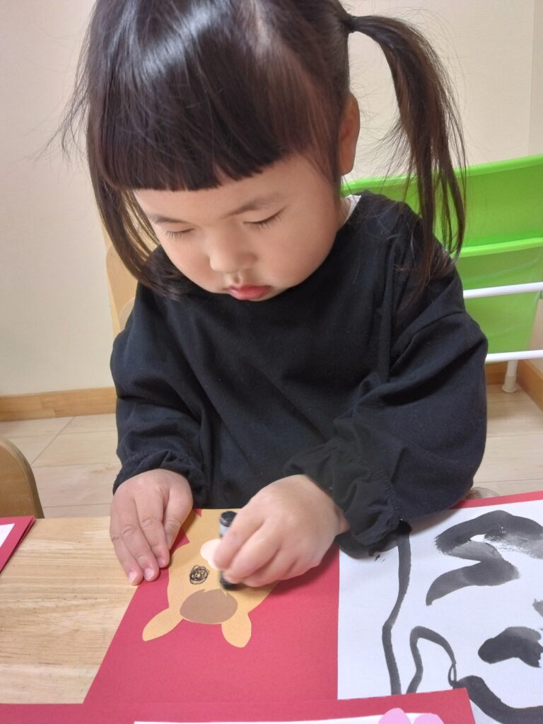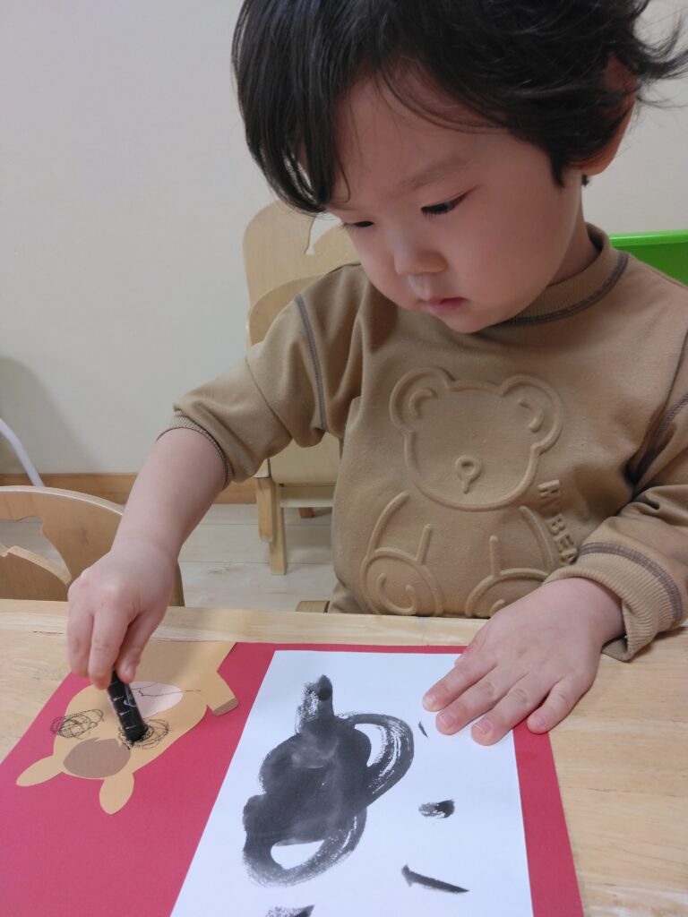 2歳児さんは1月の制作をしました。来年は午年。馬のお顔を描きましたよ🖍️クレヨンの持ち方、ちから加減。何度も経験してきたので、とてもスムーズに描けていますね☺️