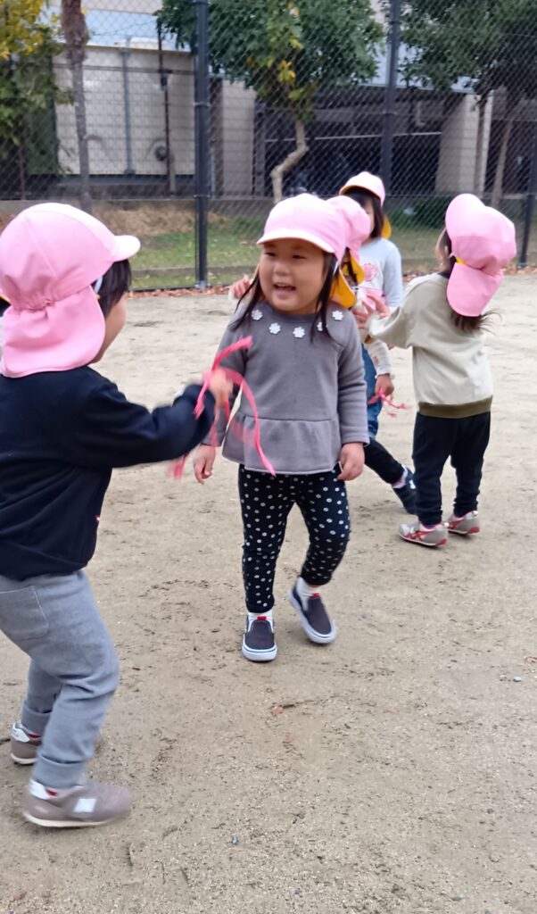 しっぽを守りながら友だちのしっぽを追いかけ、「取られたー。」という悔しい気持ちも「こんなに取れたよ!」といったうれしい気持ちも味わいながらゲームを沢山楽しんでいた子どもたちでした😳✨️