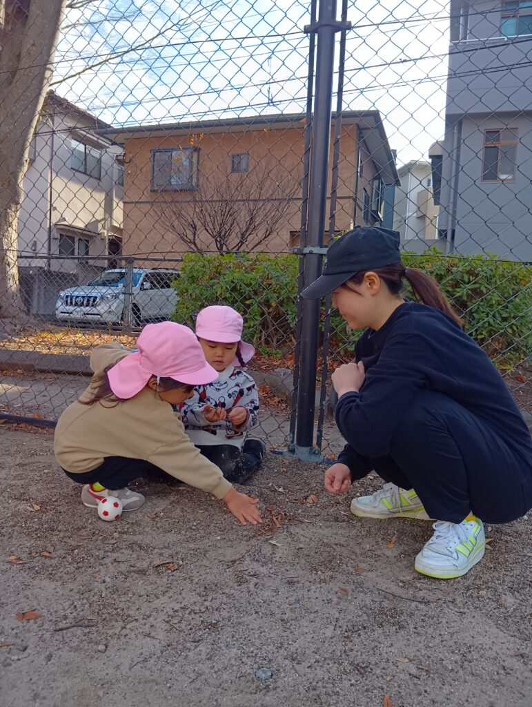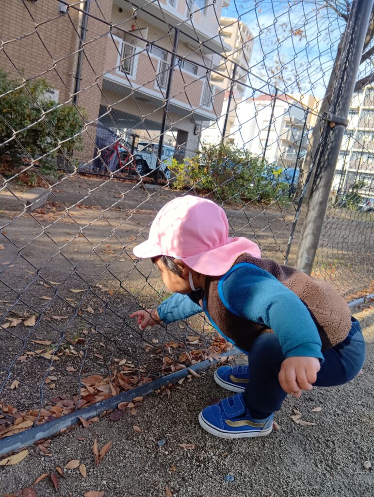 興味を示すものはそれぞれで、フェンスを揺らして音を楽しんだり、石を集めるお友達もいました。