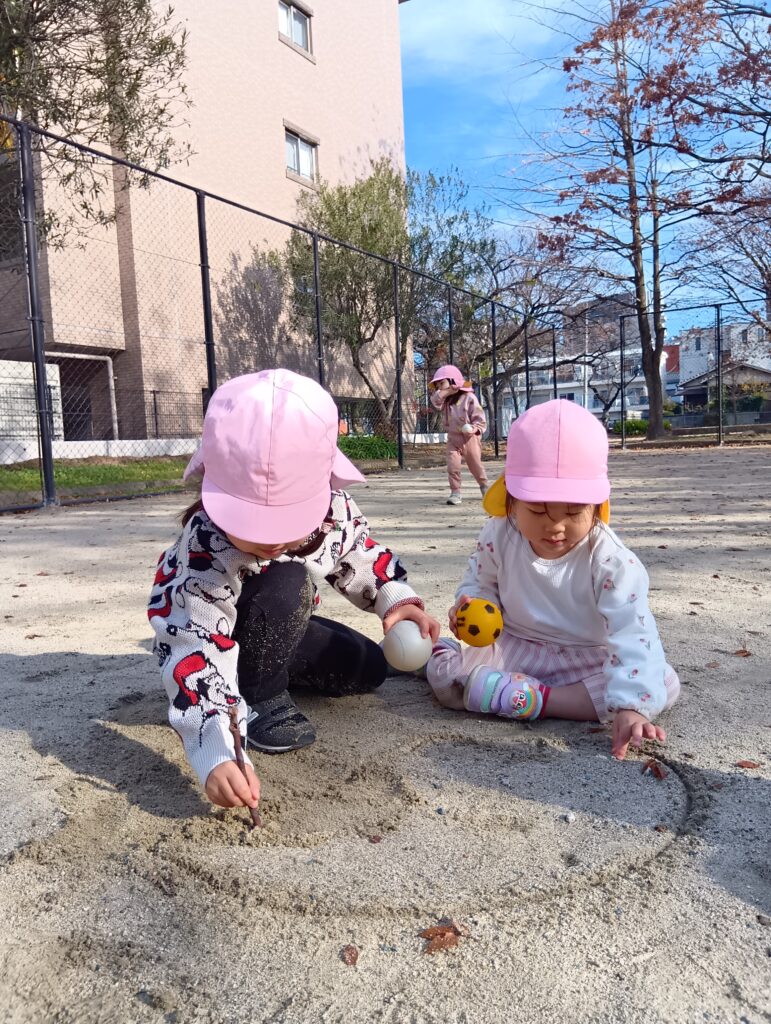 地面にお絵描きをしたり♪