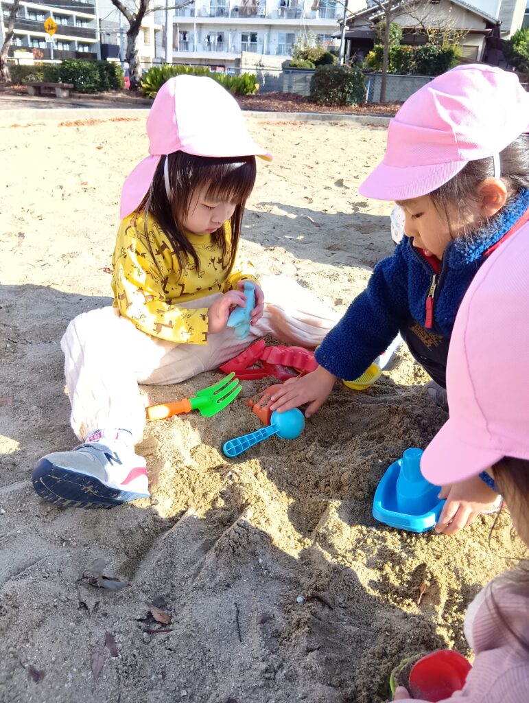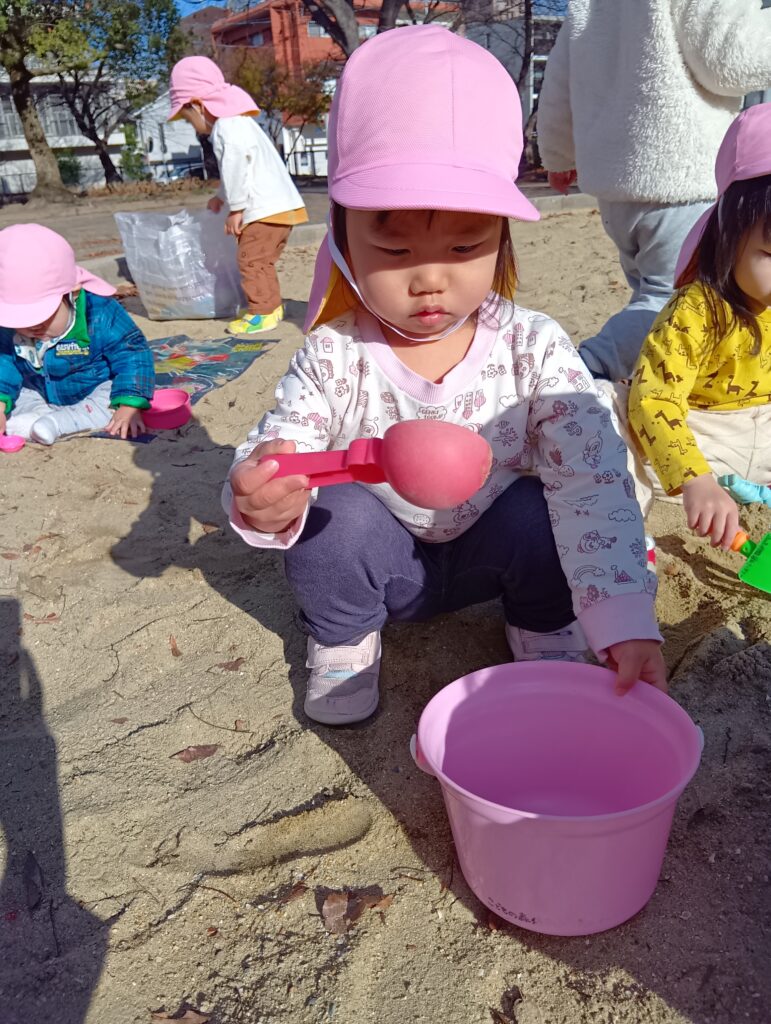 スコップやカップなど好きな道具を持ってみんなとっても嬉しそうに遊び始めました✨️