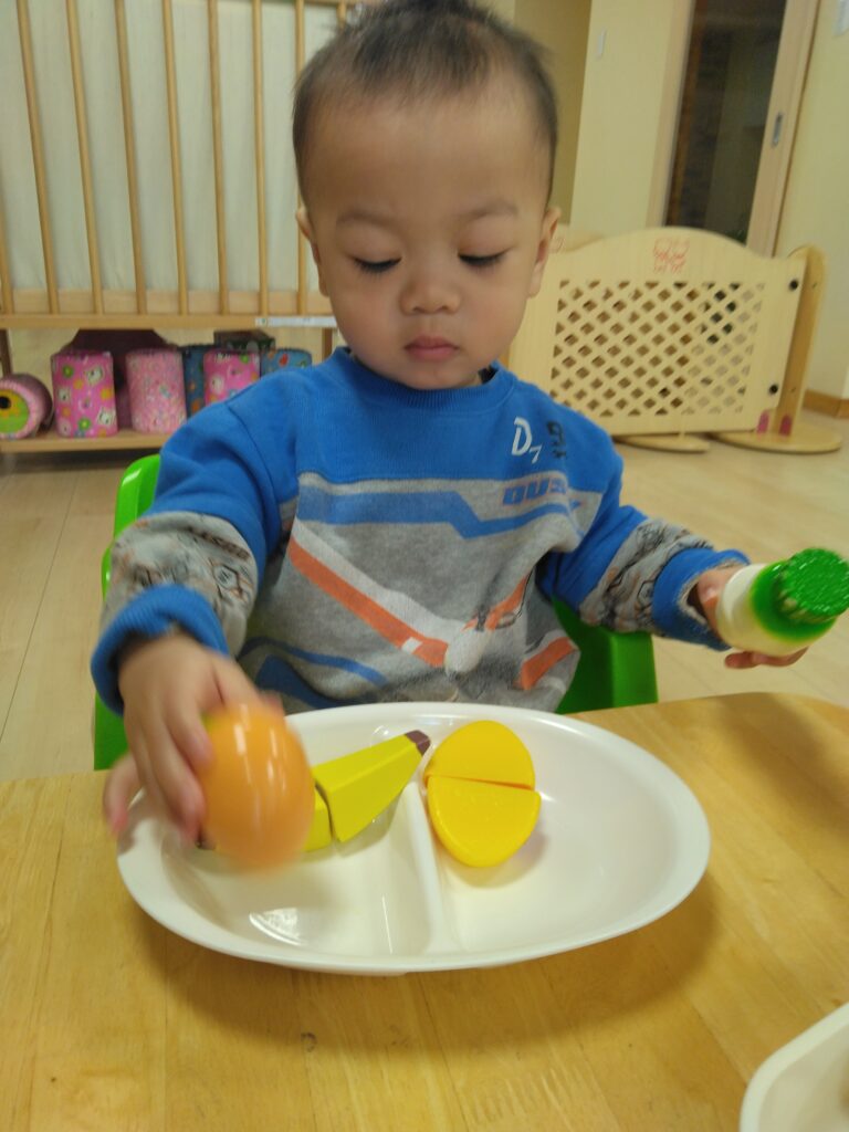 1歳児さんはおままごと遊びもしました✨お料理をつくってお皿に並べたり、「ぱくぱく」と食べる真似をしたりと、おままごともとっても上手に遊べるようになりました😊✨