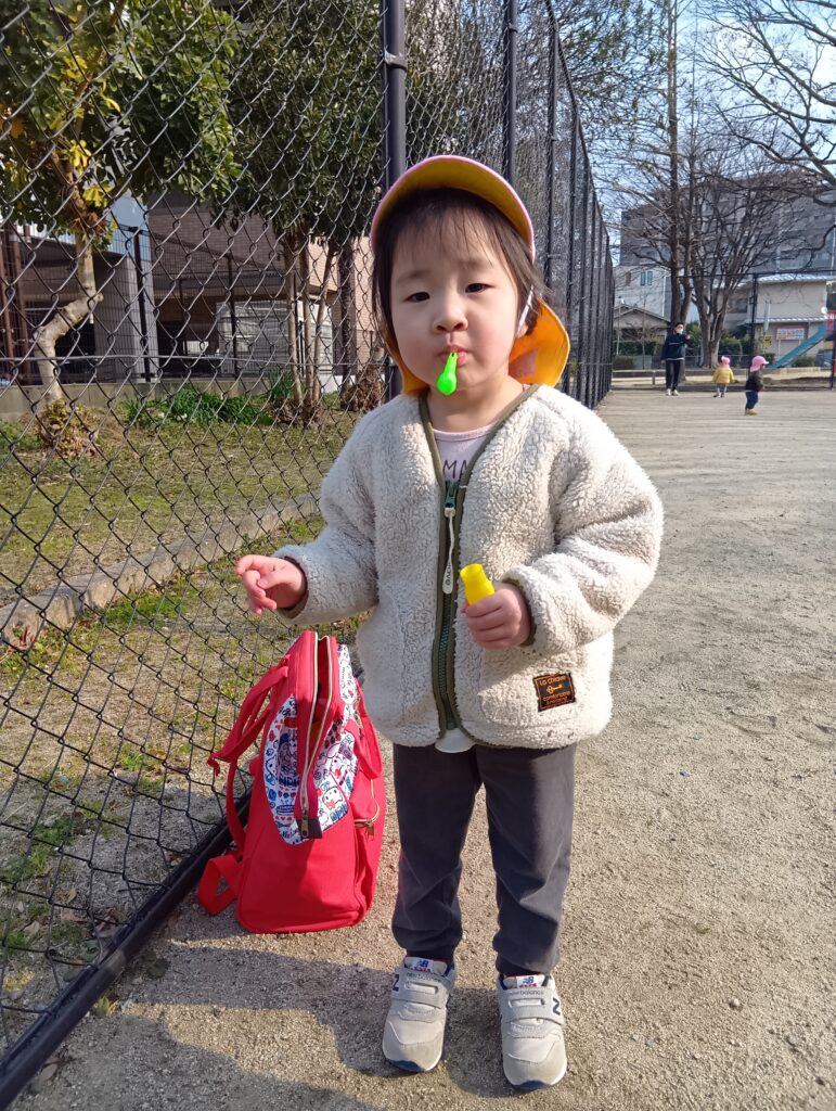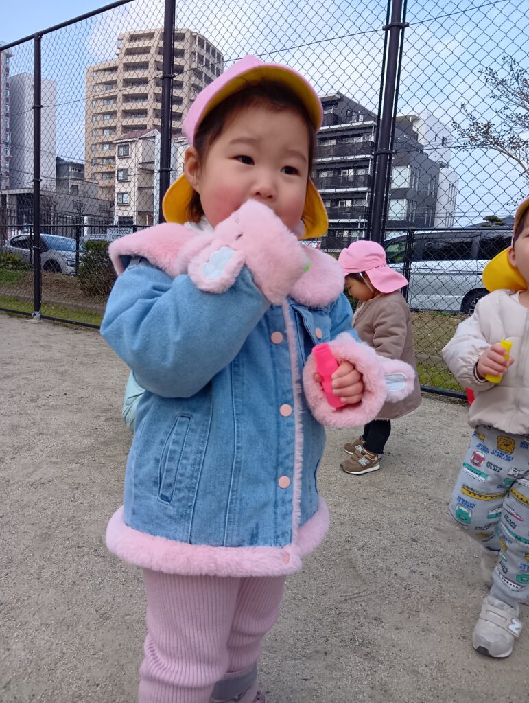 みんな楽しみで順番にしゃぼん玉を配っているところをじっと見て待っていました👀