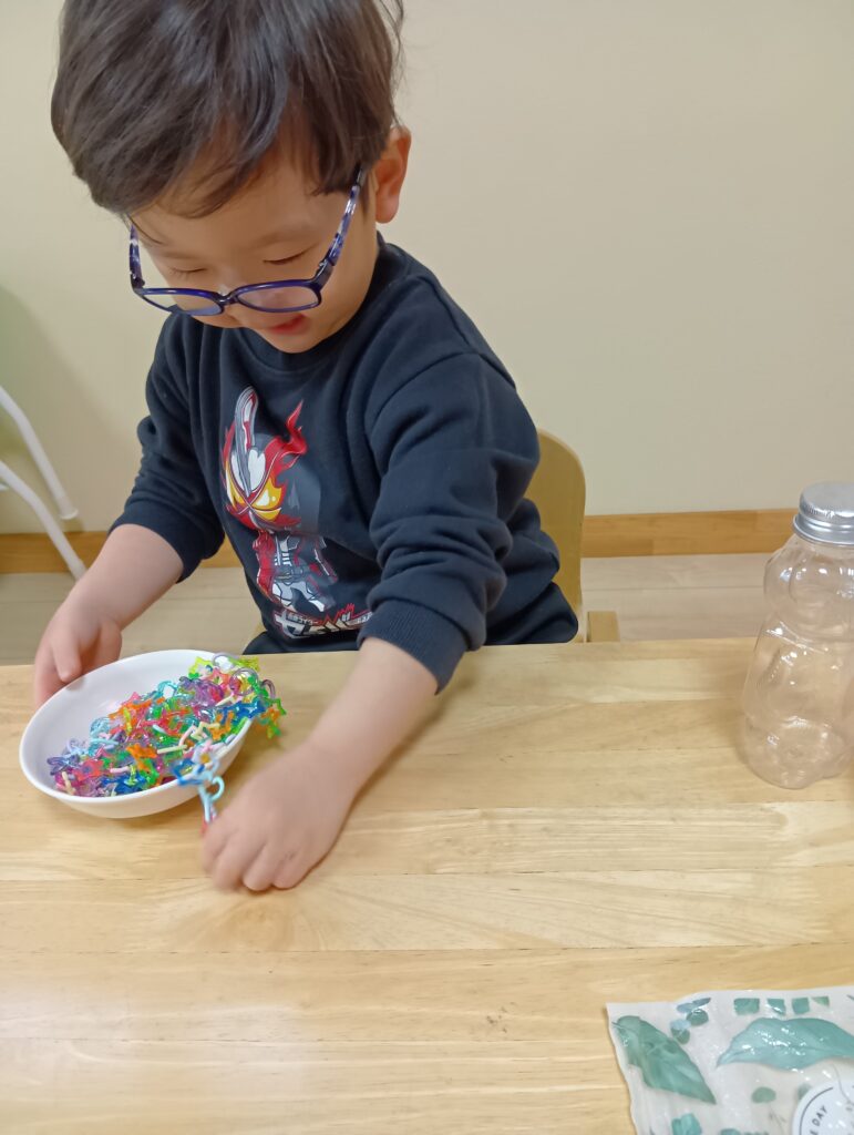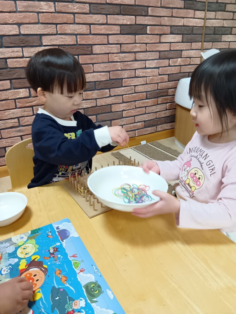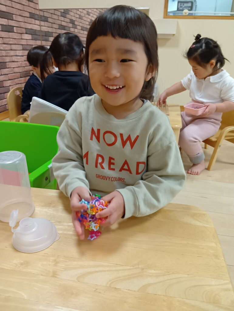 自分で好きな机上遊びを選びもってきて楽しんでいました♪お片付けも自分たちでしてくれましたよ✨️