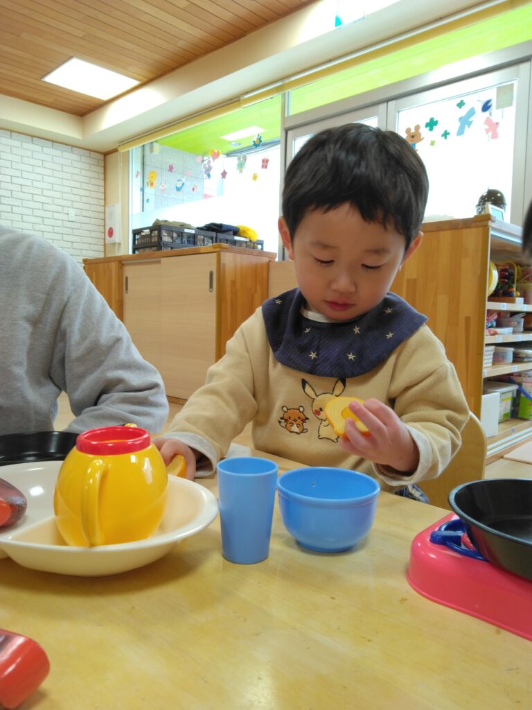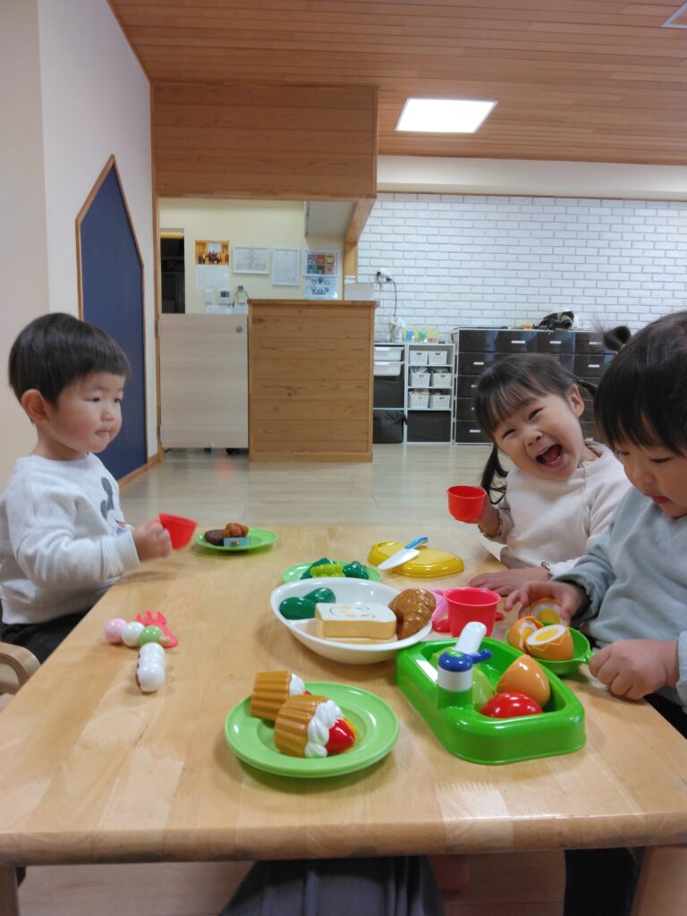 お部屋ではままごとやブロックをして遊びました!