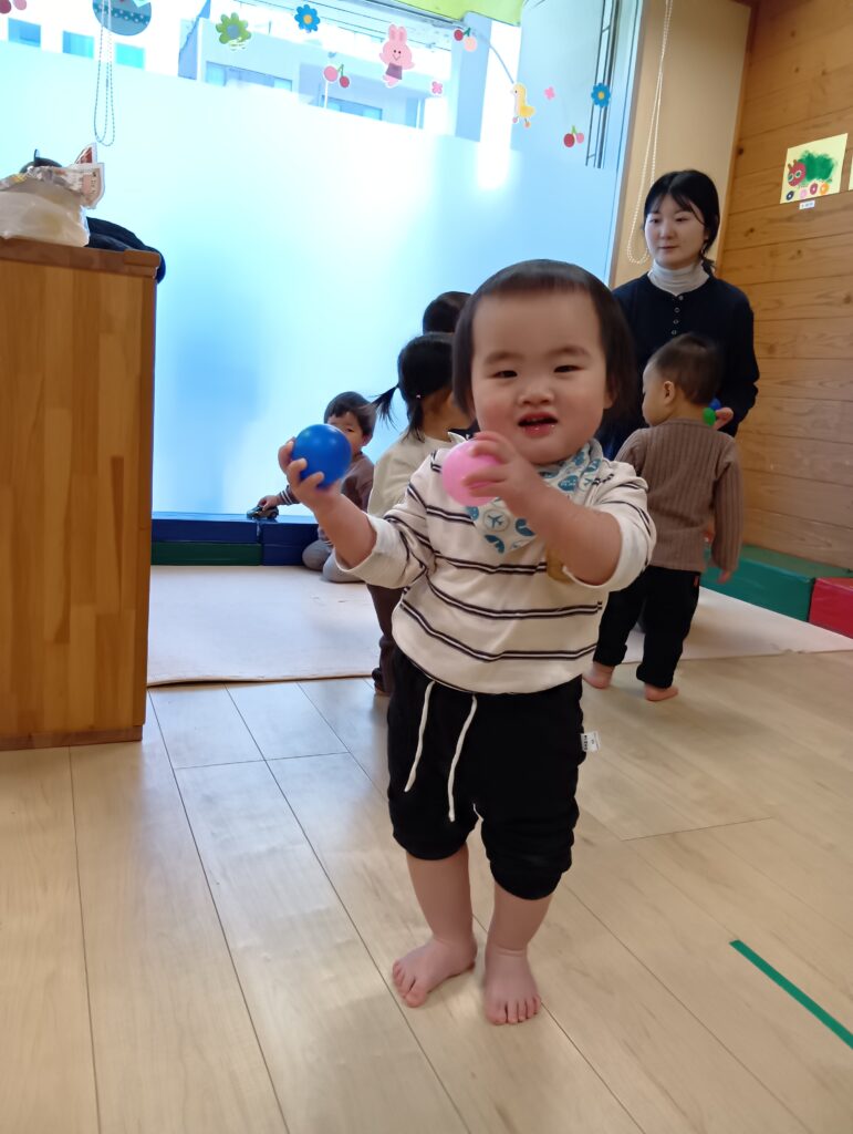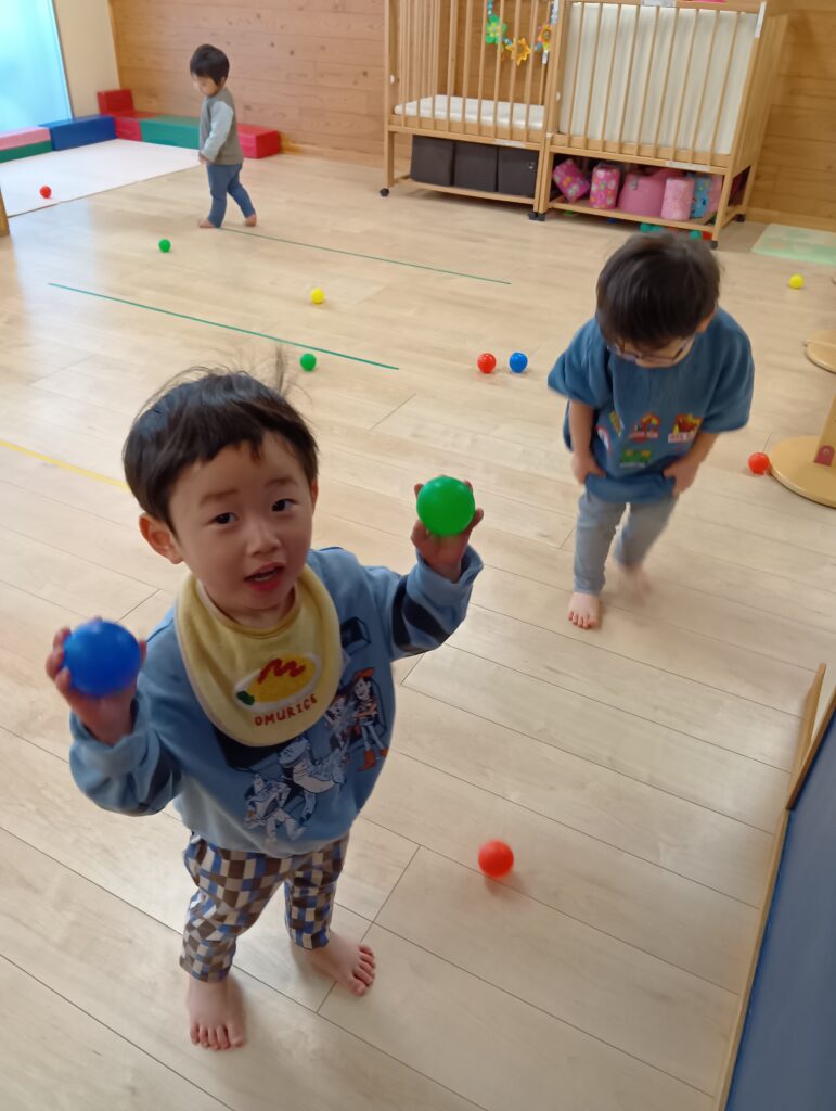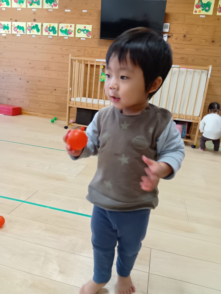 みんな大好きなボール遊びもしました!ボールを持って大喜び😆