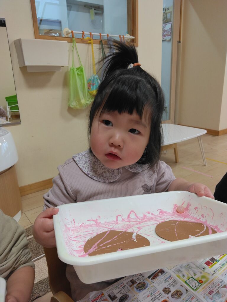 ビー玉が転がり色が付いていくのをとっても楽しそうに見ながらコロコロ転がしていました👀