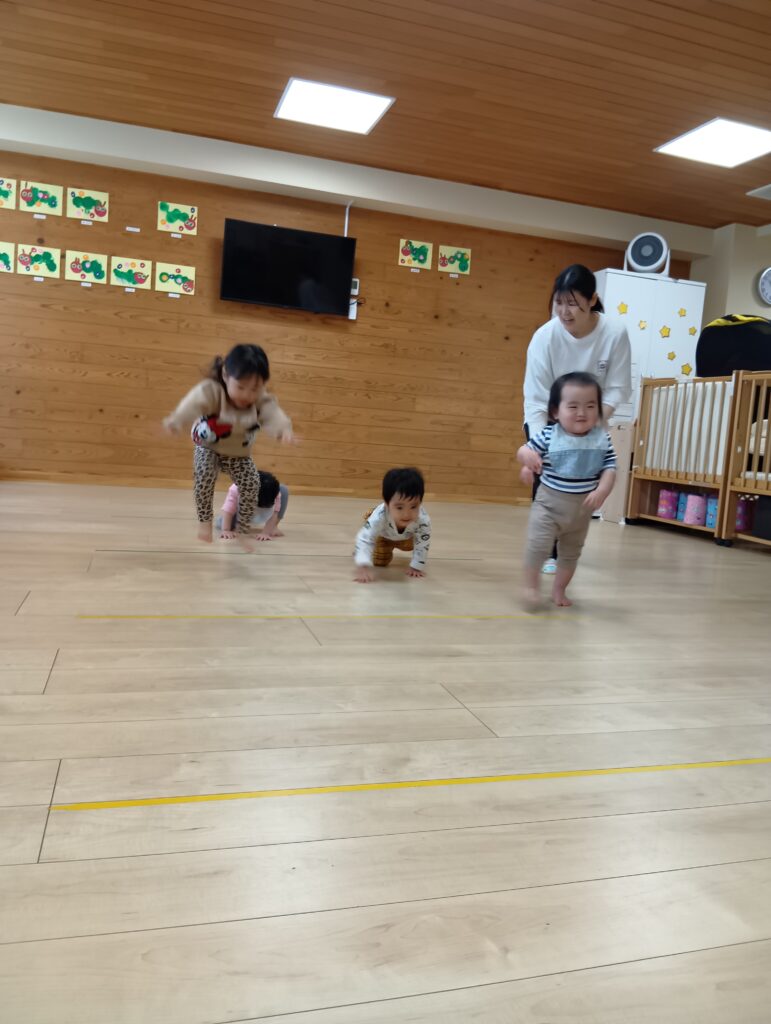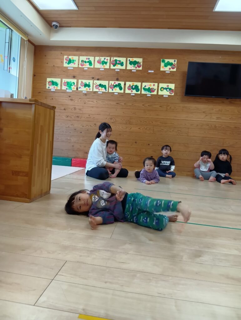 ピアノに合わせて手拍子をしたり、どしんどしんと歩いたり、つま先歩きをしたり、みんなとっても楽しそうに歩いていました☺️