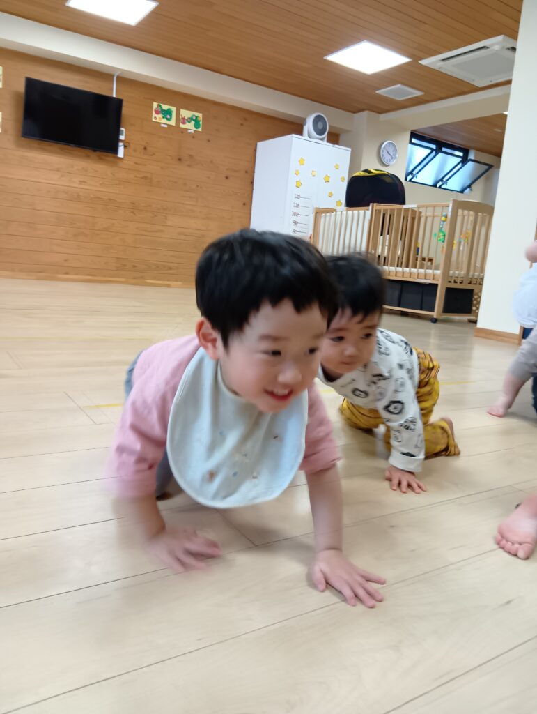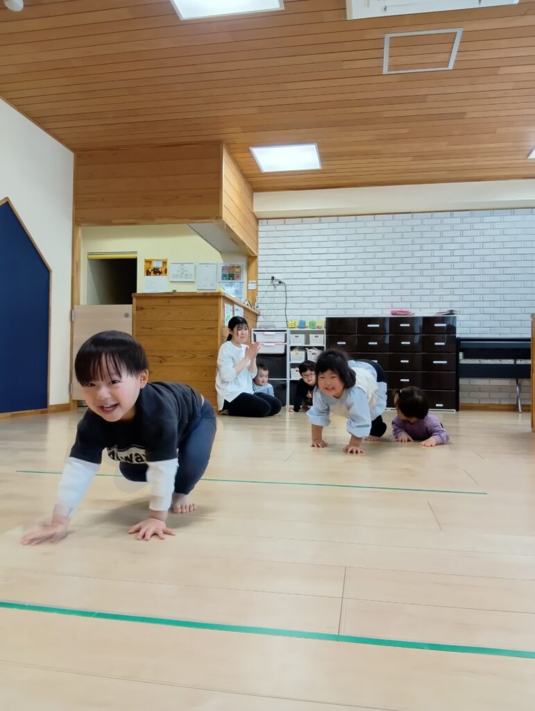 ライオンさんになって膝を付けずに手と足で歩きます🦁
