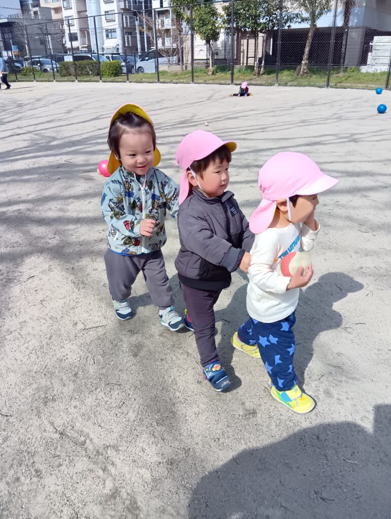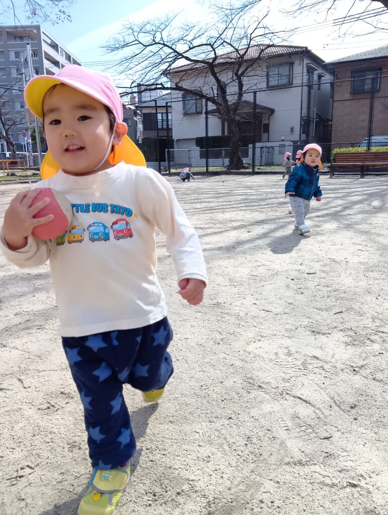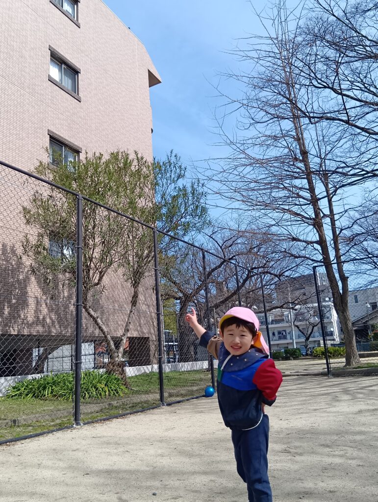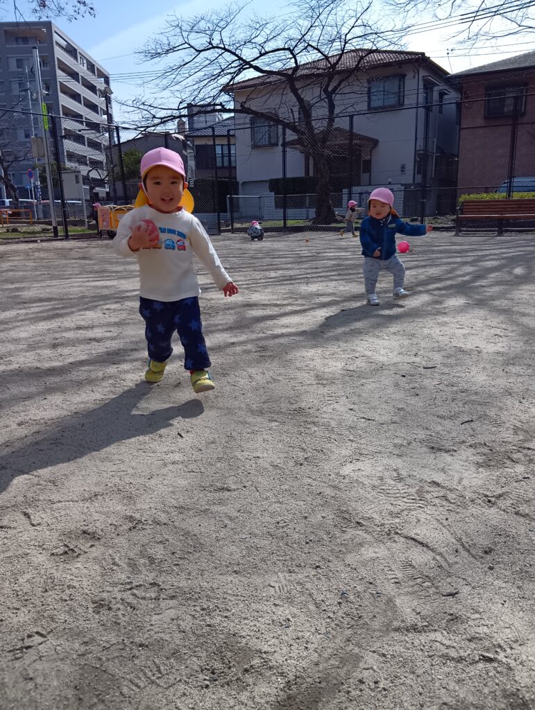日陰は肌寒い瞬間もありましたが、日差しはとても暖かかったですね☀今日は磐瀬公園でボール遊びをしました。