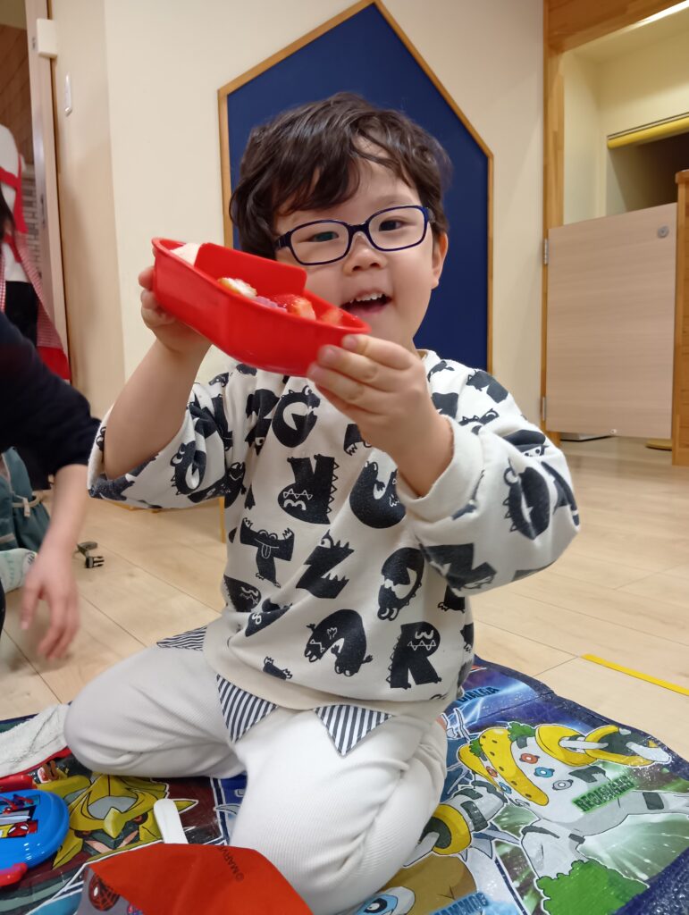開けてびっくり!「イチゴが入ってる〜!🍓」と大喜びです😊