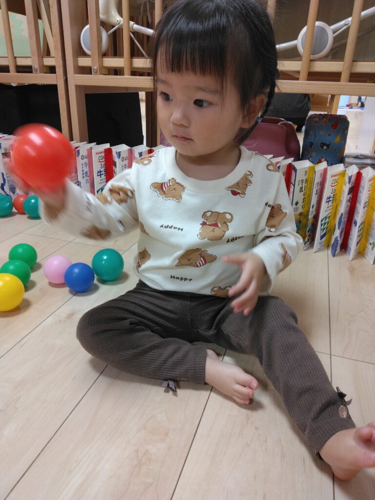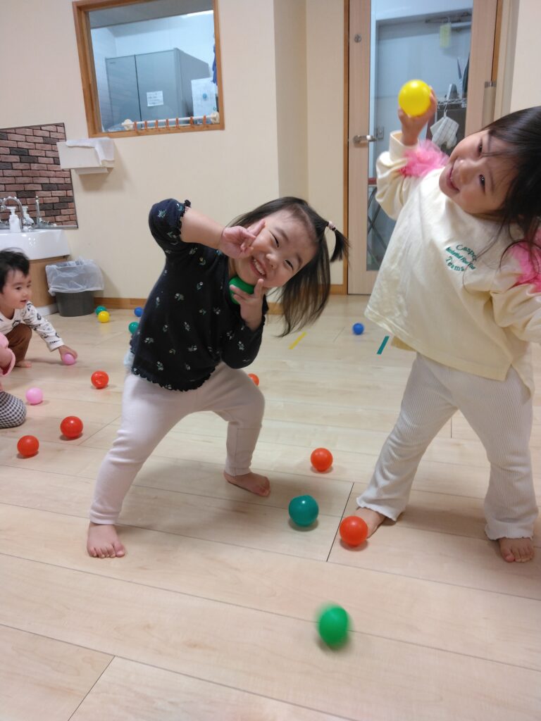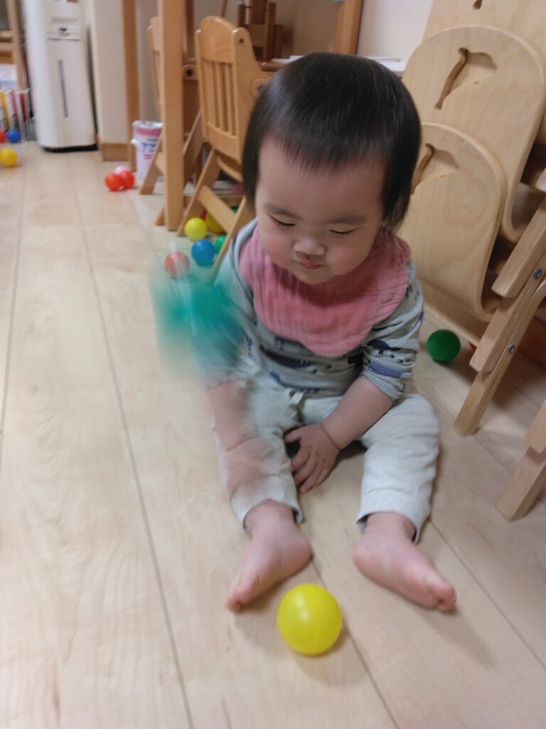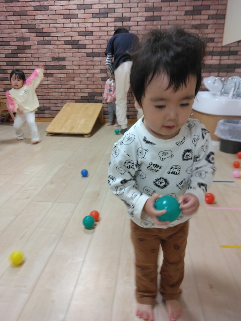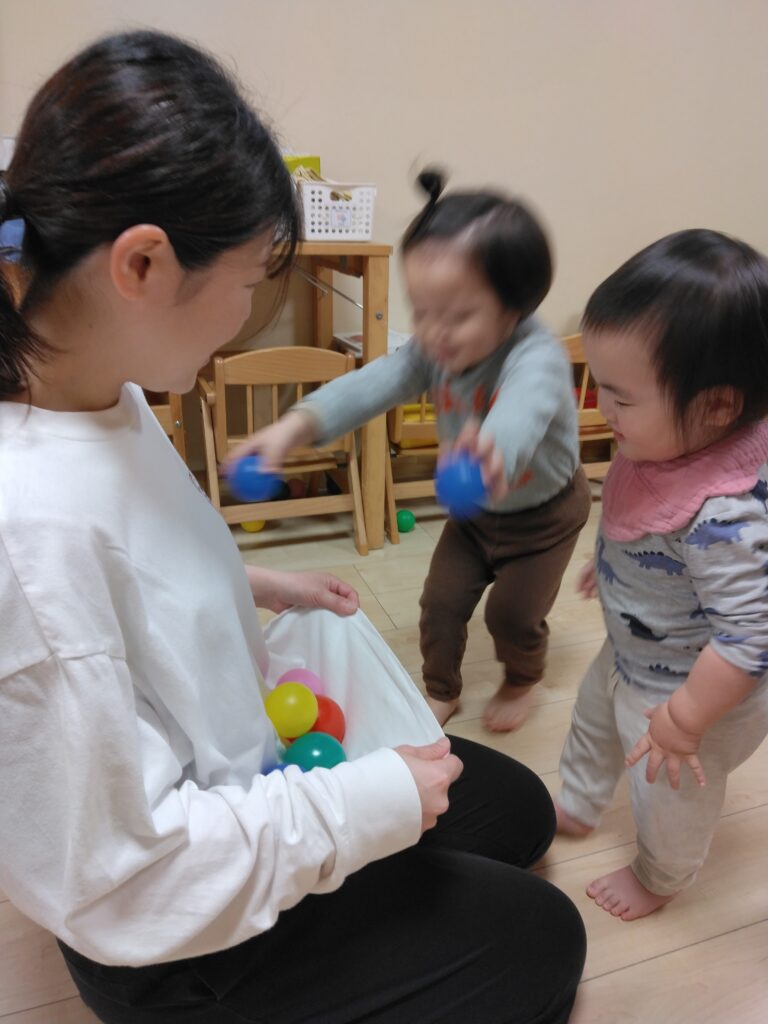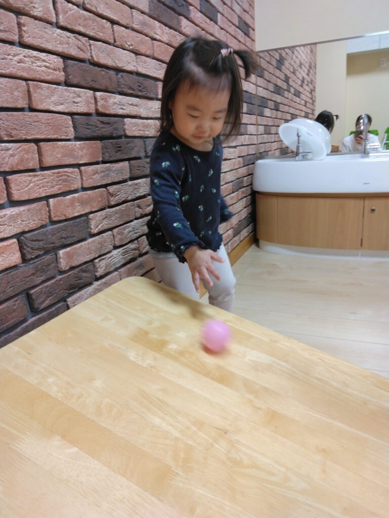 近くで見守る保育者が、遊び方を伝えると、繰り返し何度も楽しんでいましたよ。