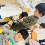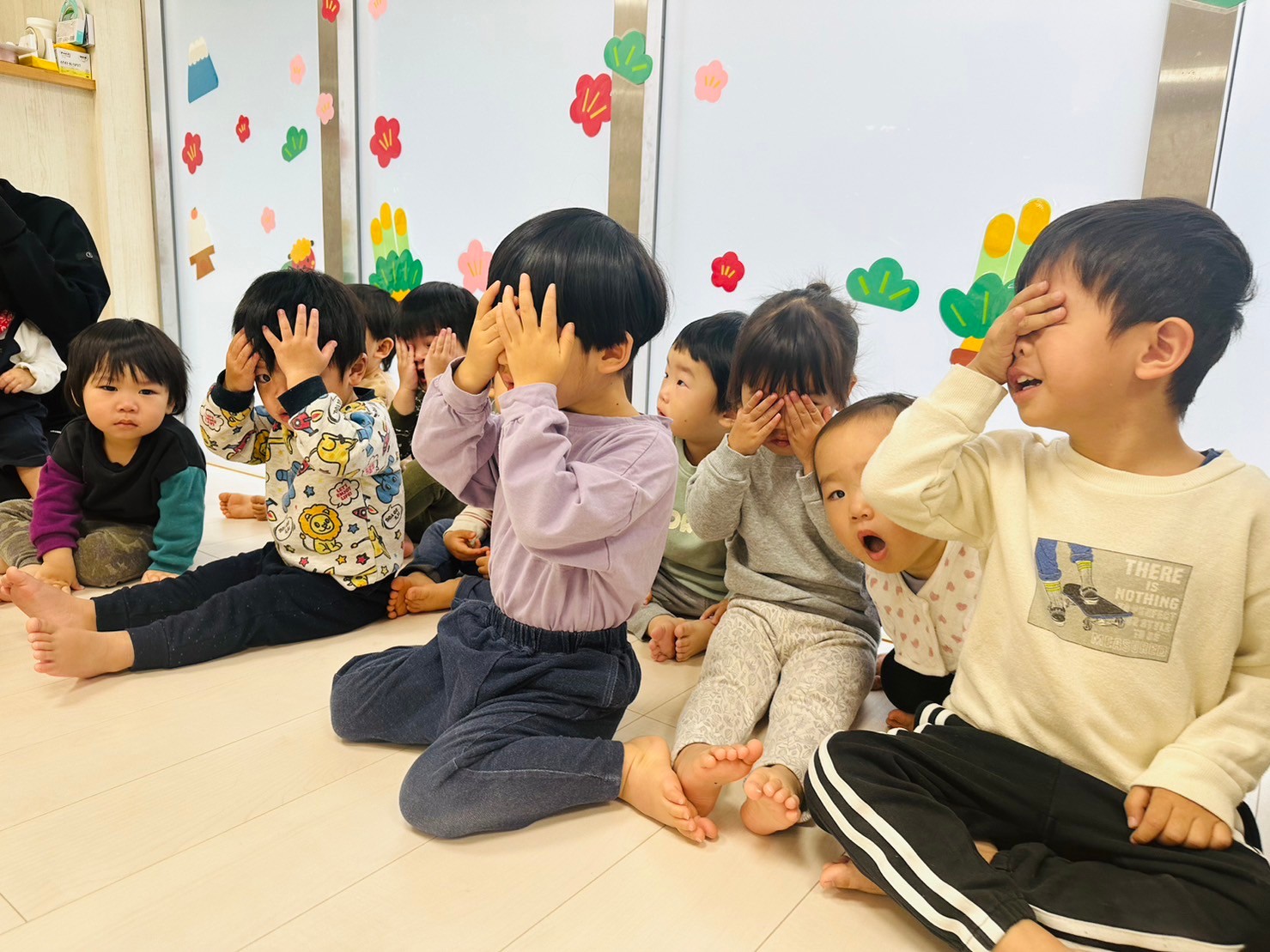 先生がカードを隠してる時は、見えないようにみんな目隠し☺️