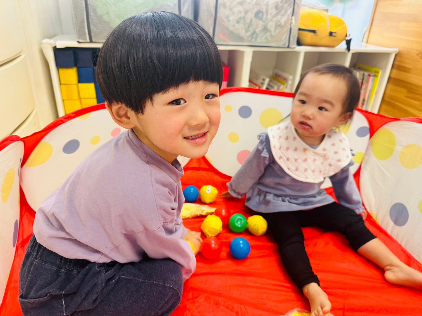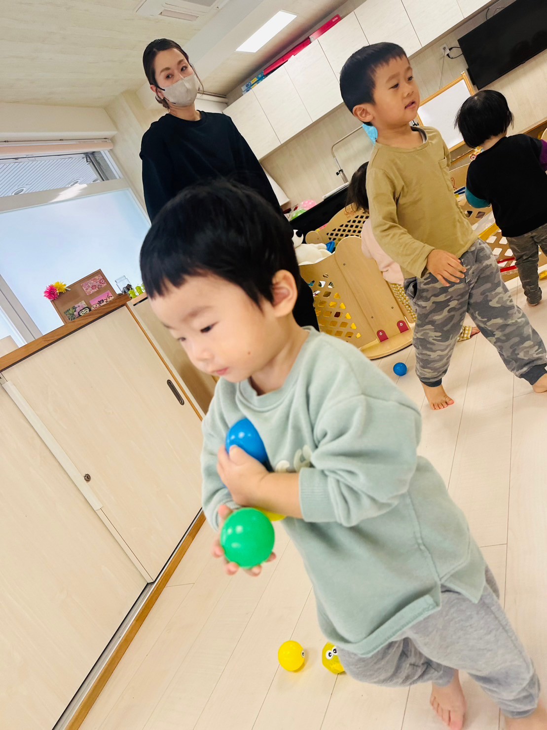 その後は、お部屋の中でカラーボールで遊びました🌈