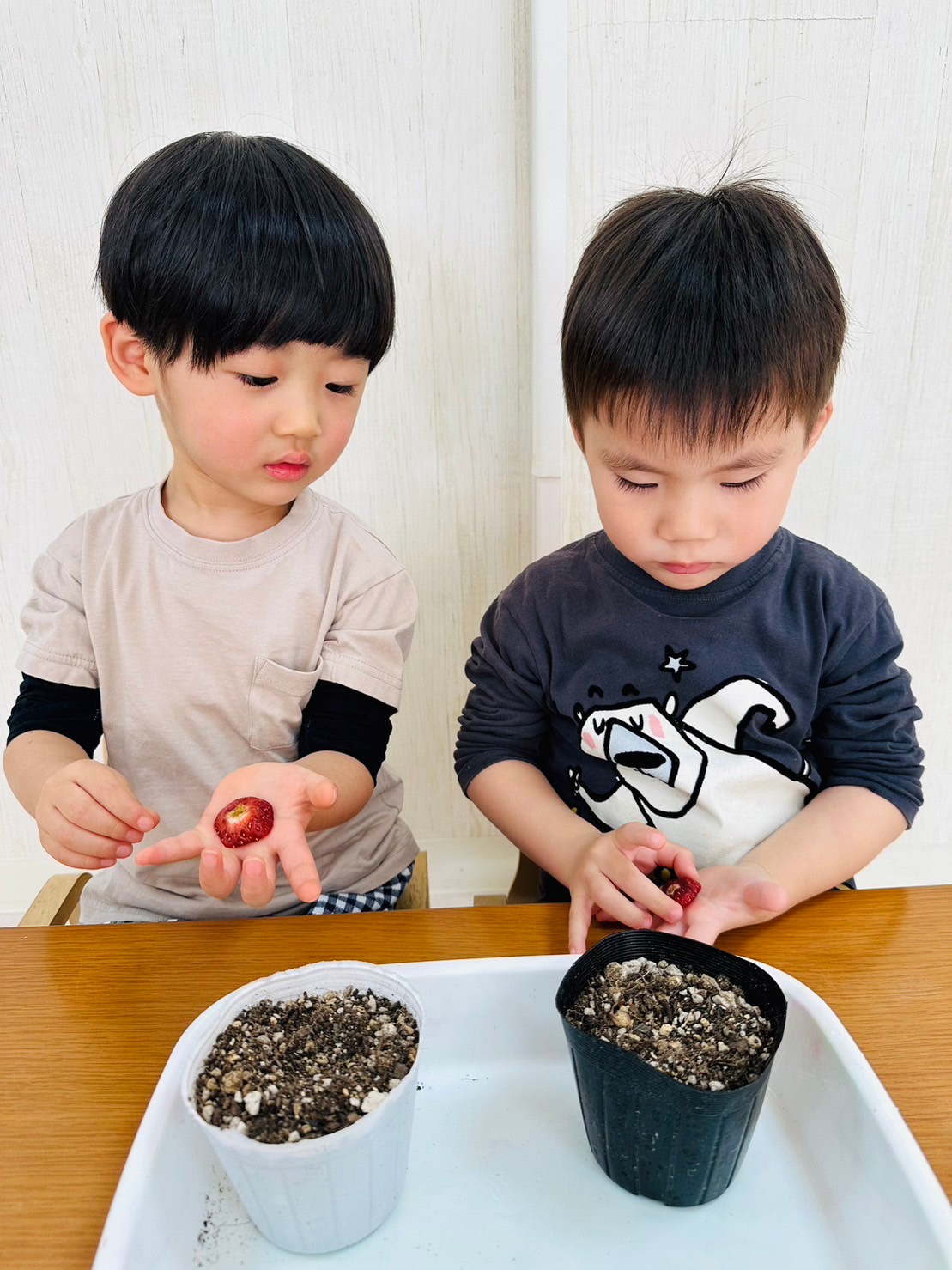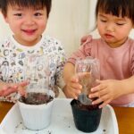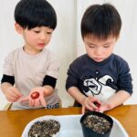上手に土をかけたり、水をあげれたよ🎶