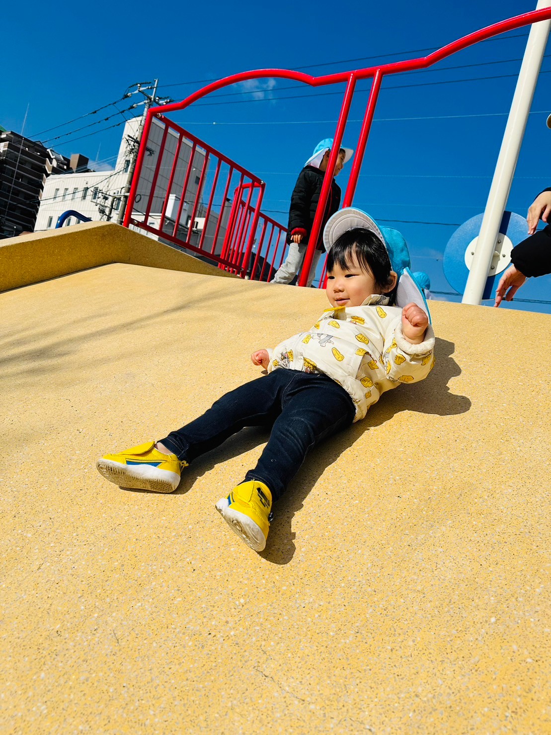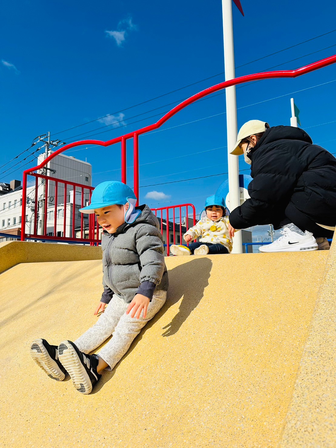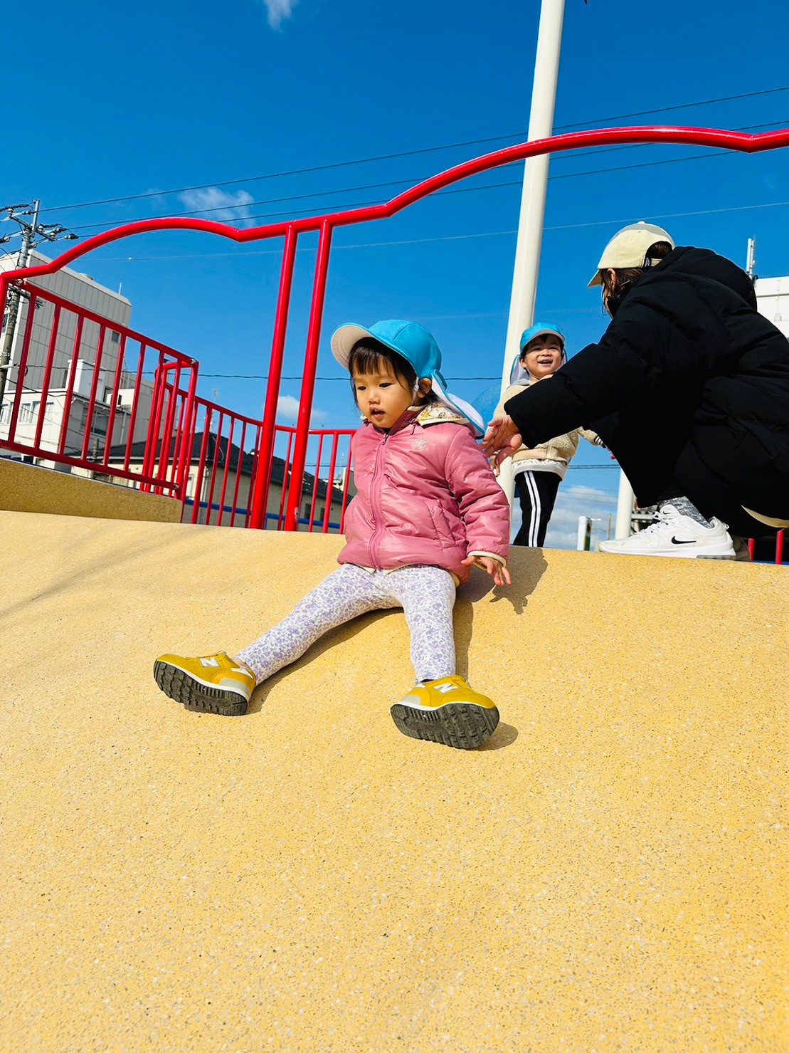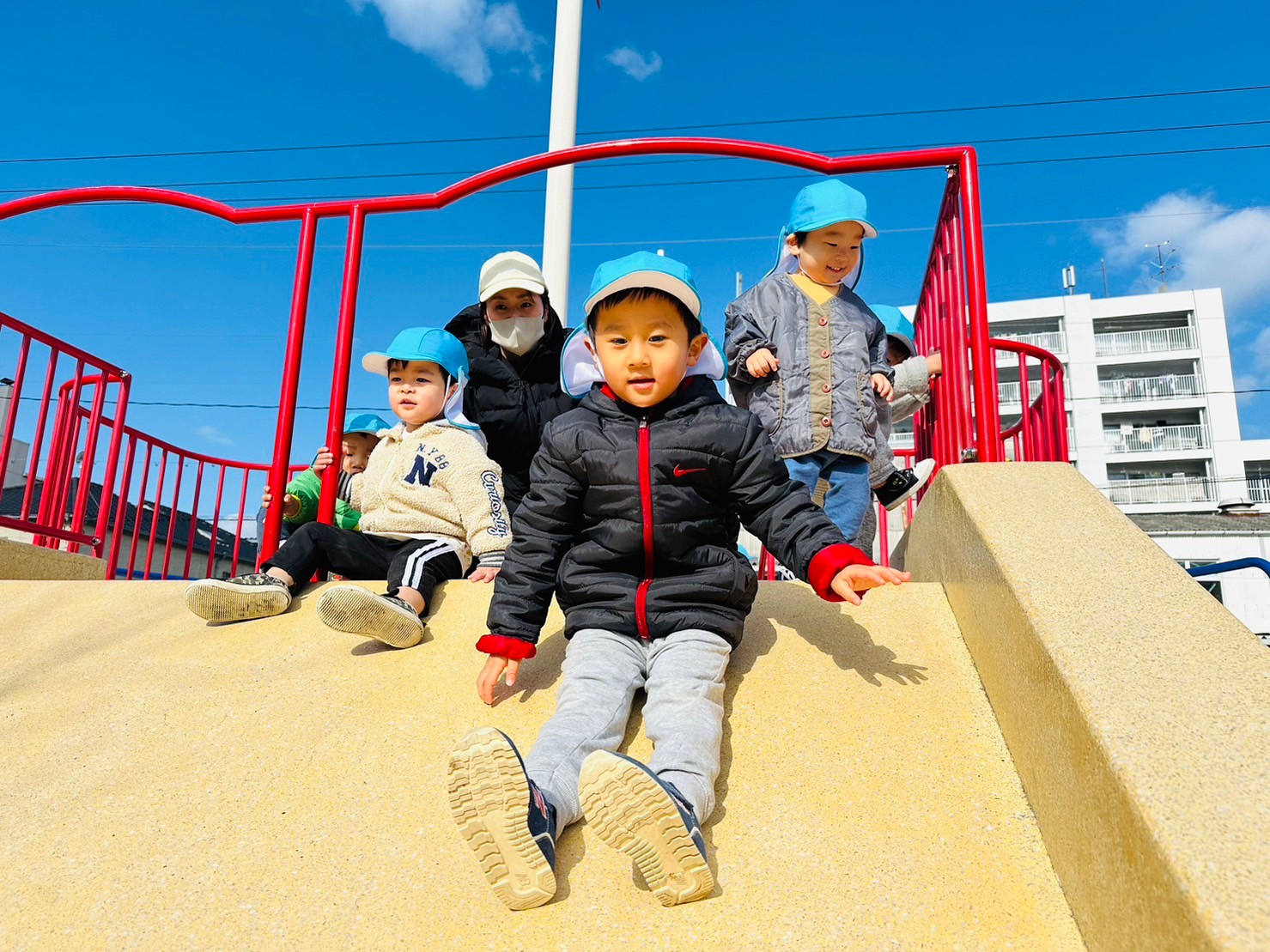 最初怖がってたお友だちも段々慣れてきて1人で滑っていましたよ🧡
