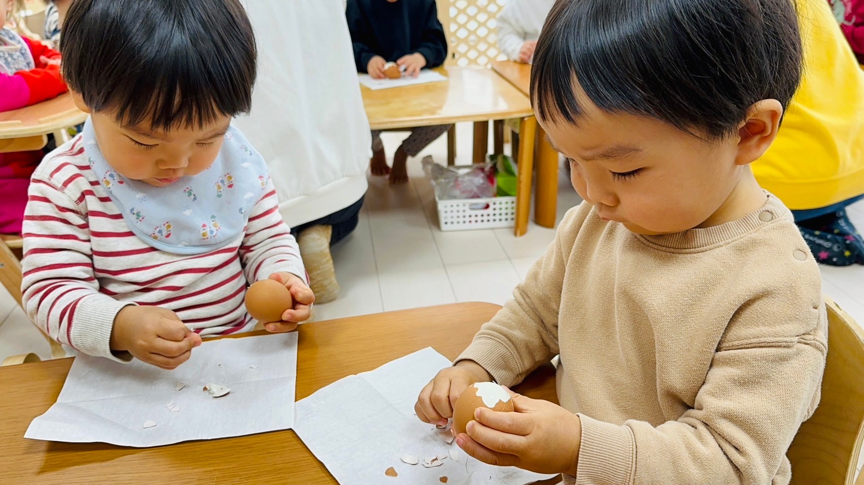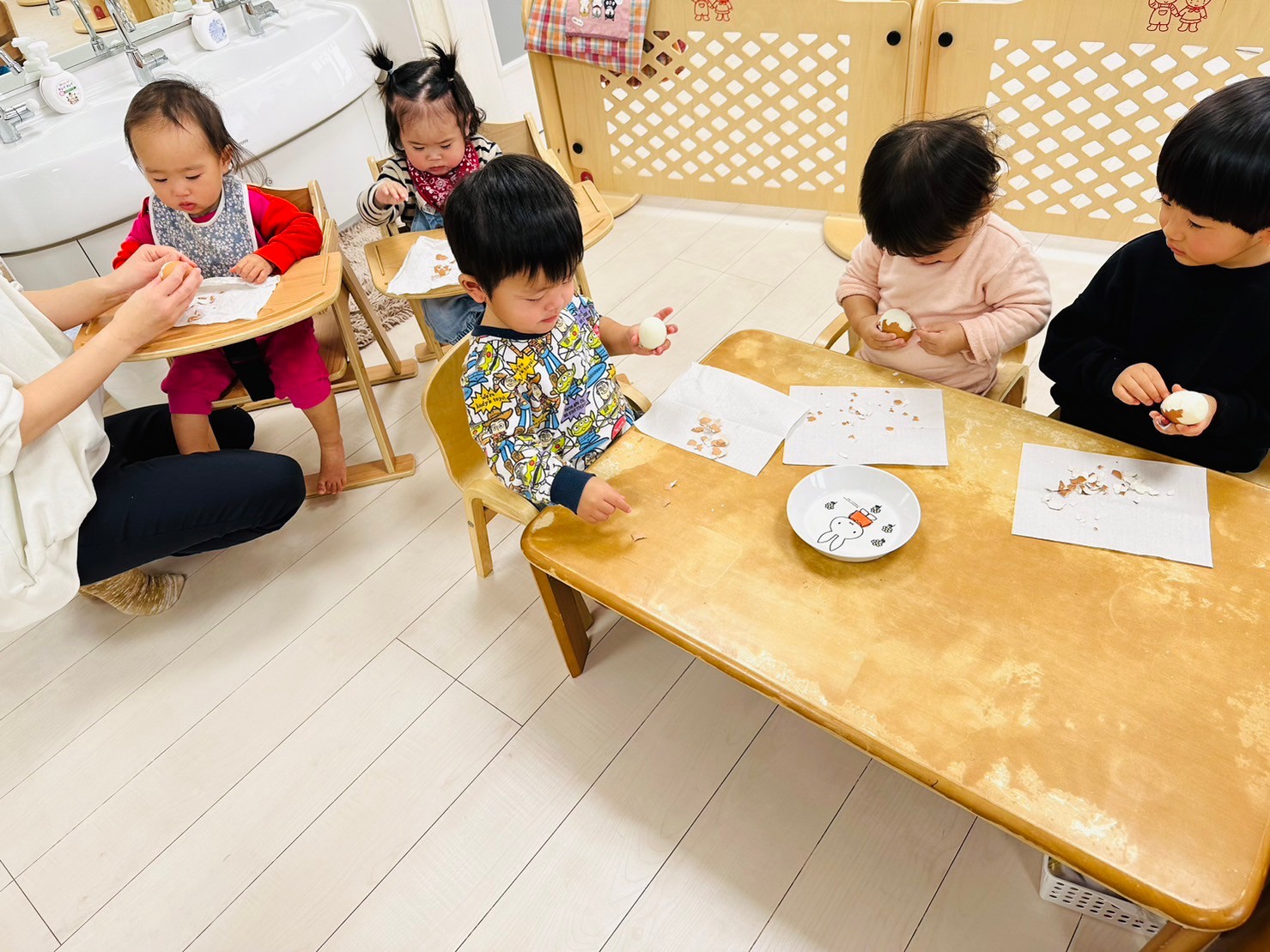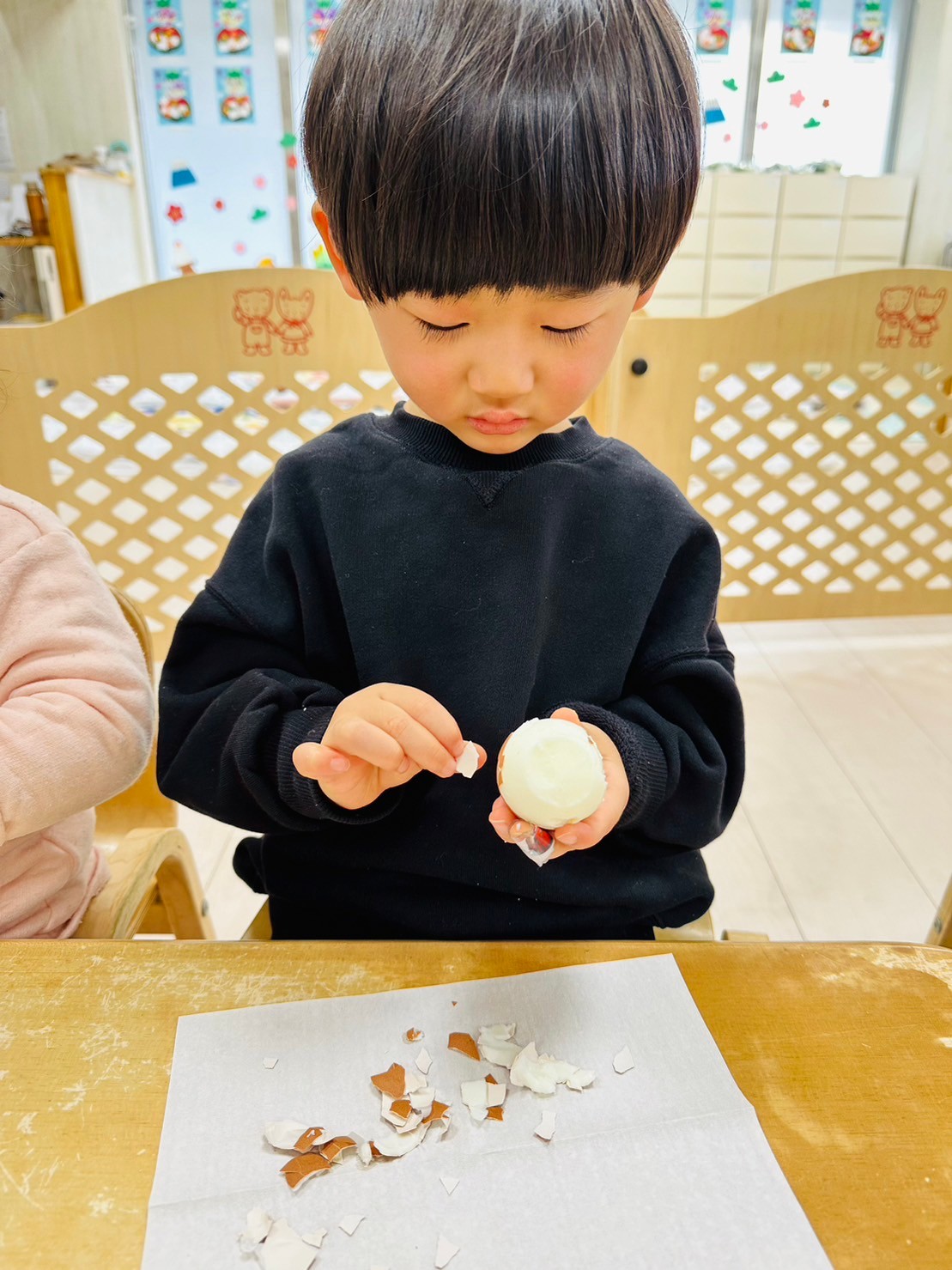 お友達も卵の殻剥き🥚に挑戦✨️💗!