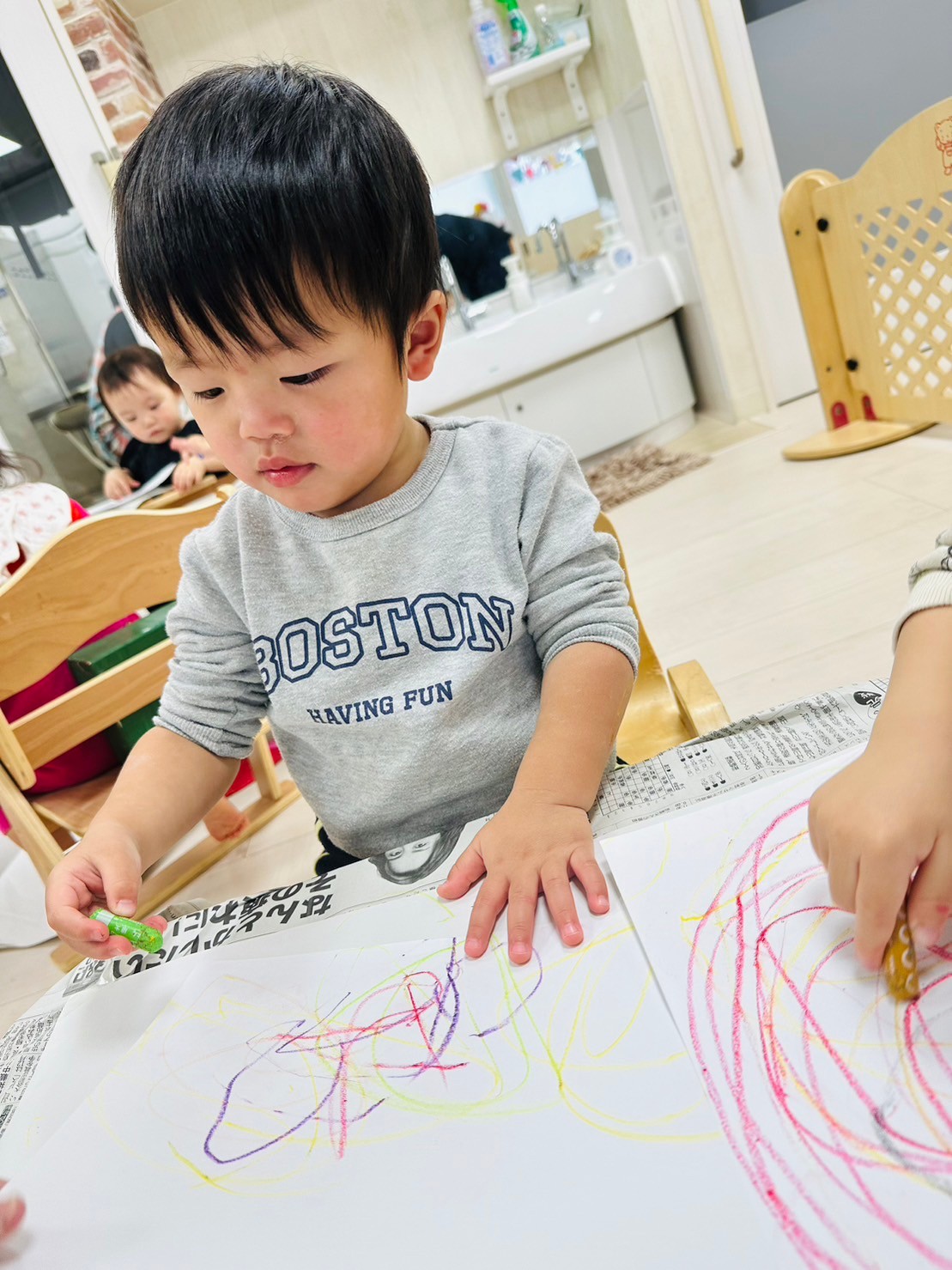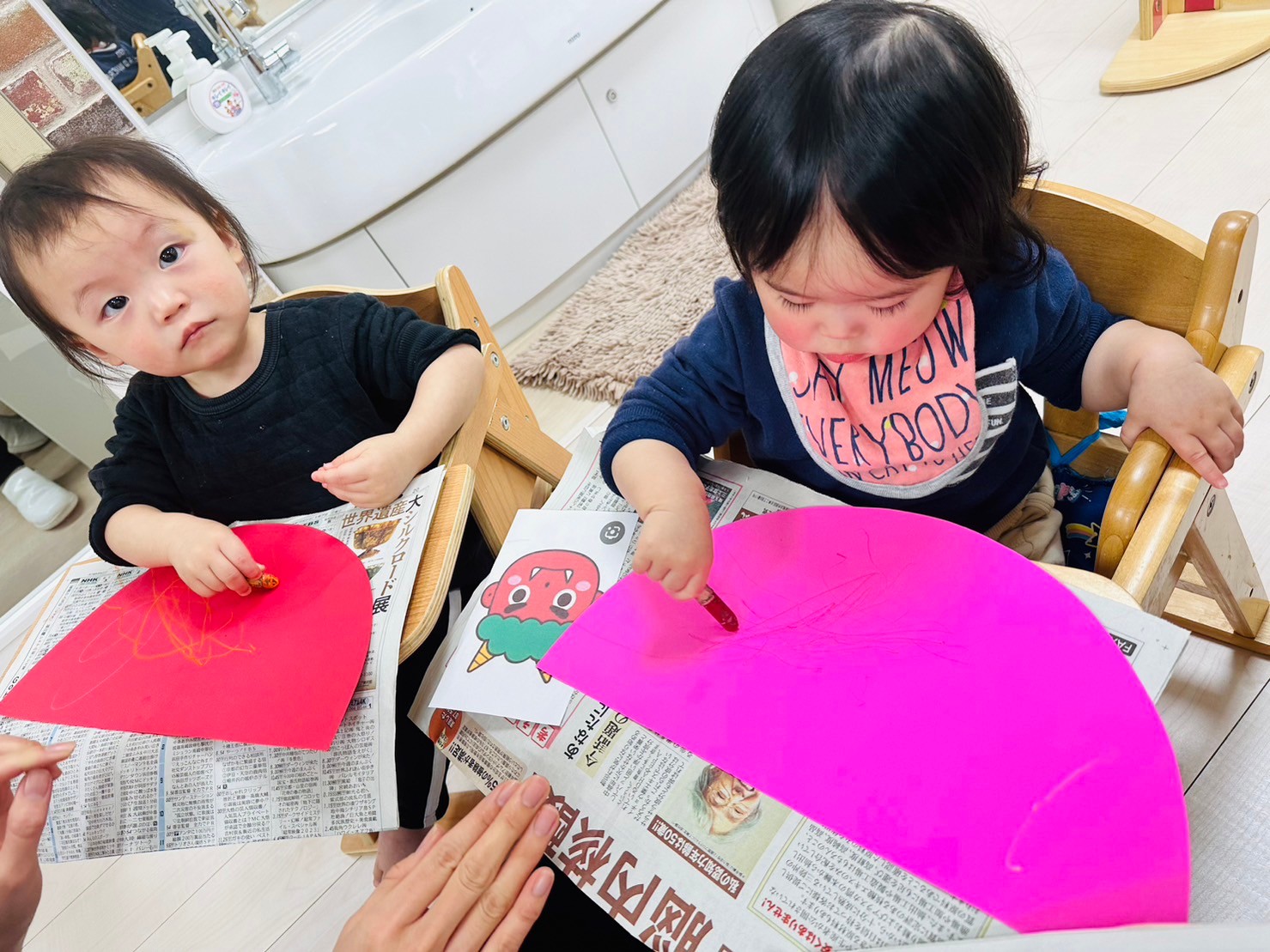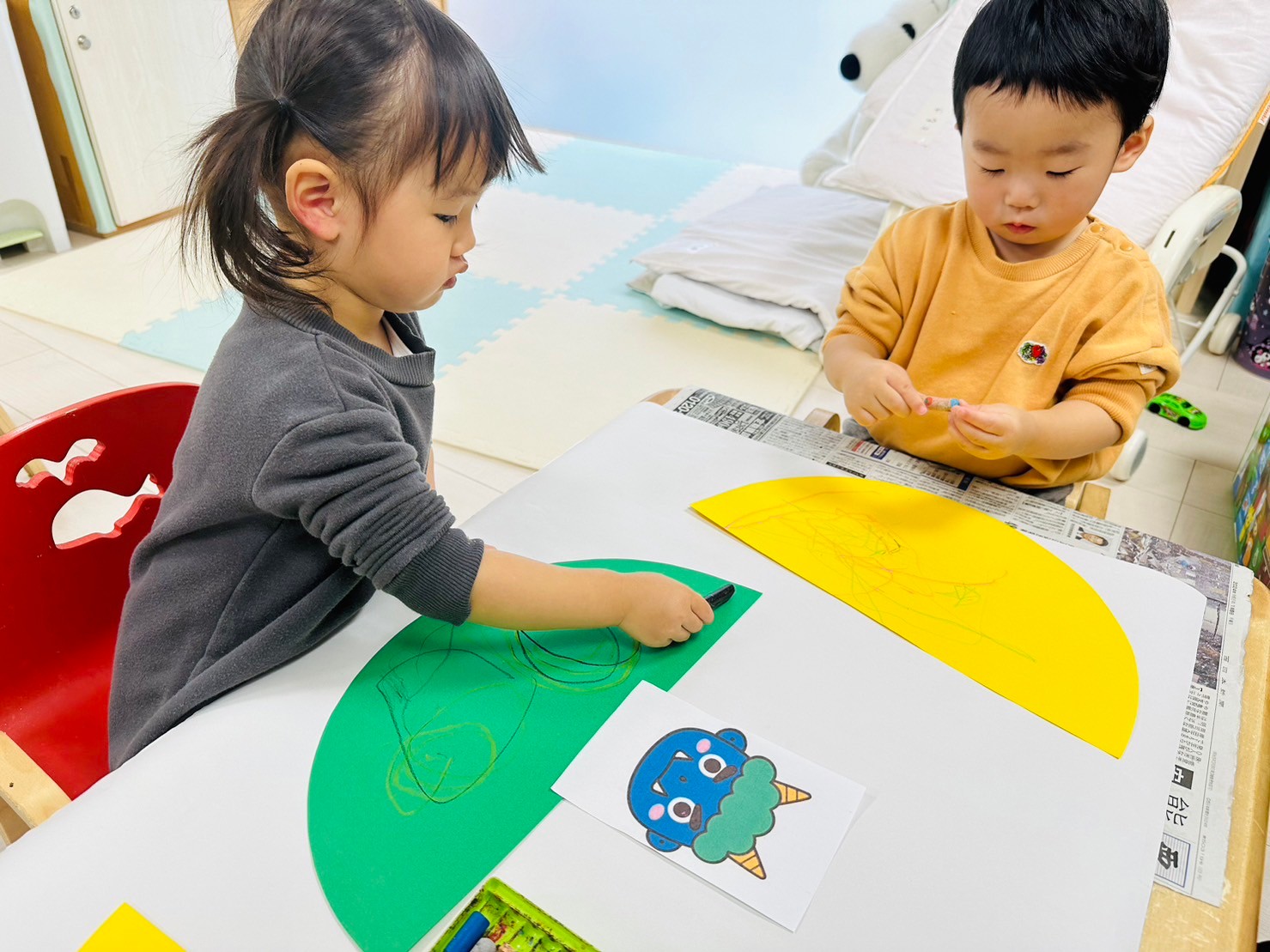 クレヨン🖍で帽子に鬼の顔を書いたり⭐️