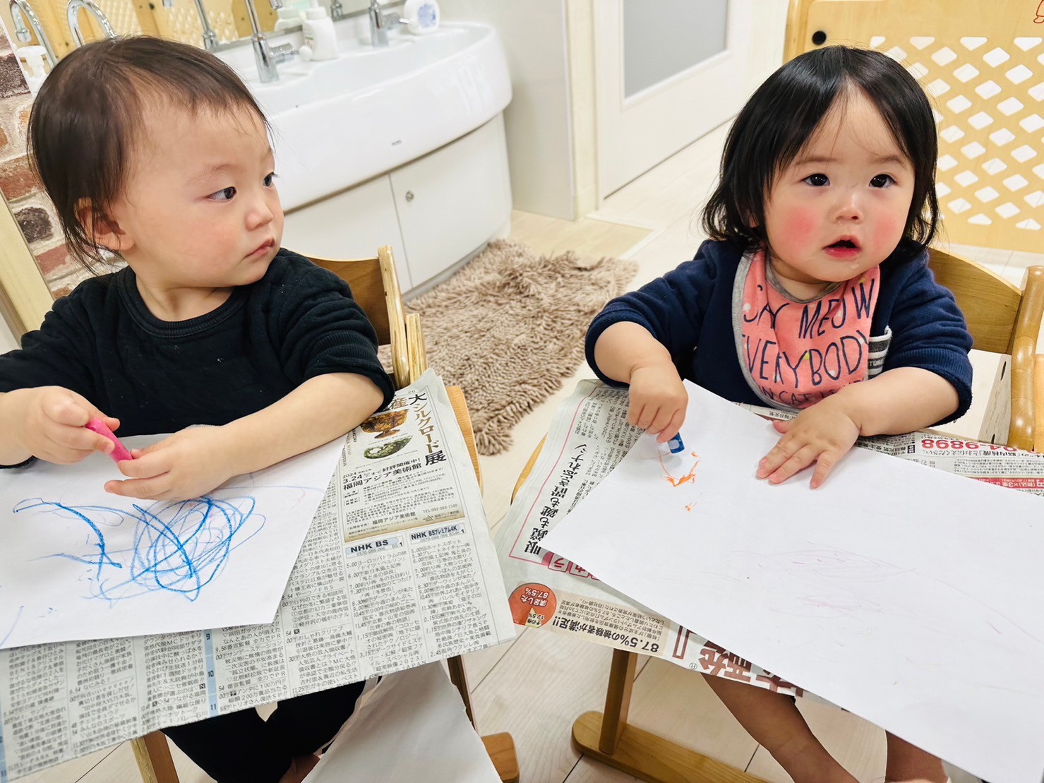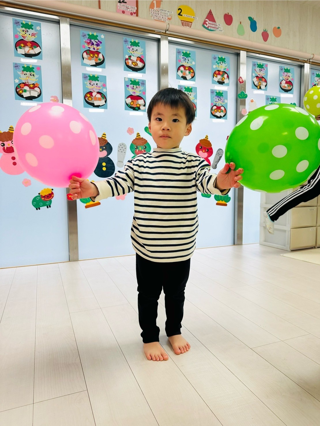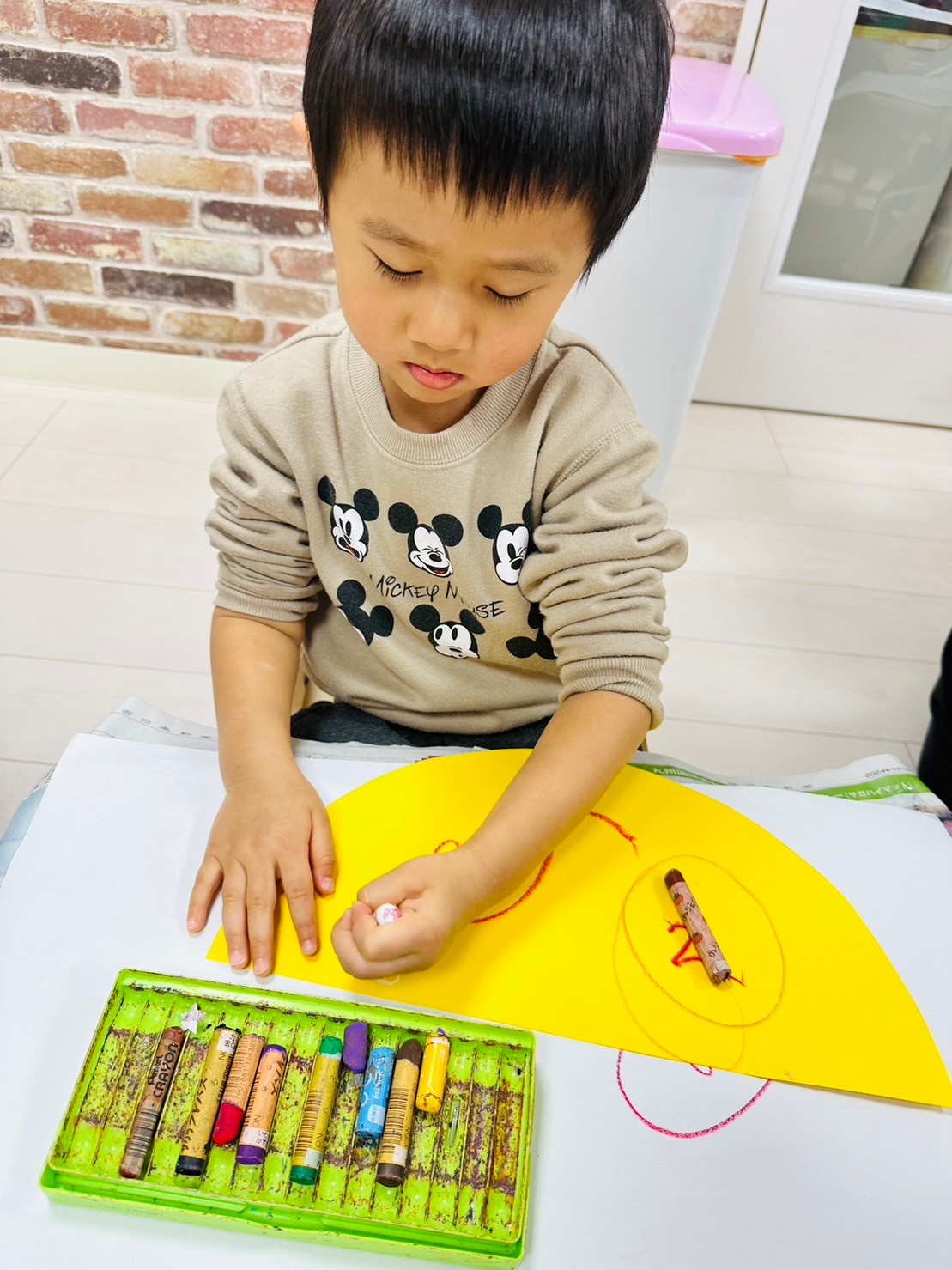 クレヨン🖍で帽子に鬼の顔を書いたり⭐️