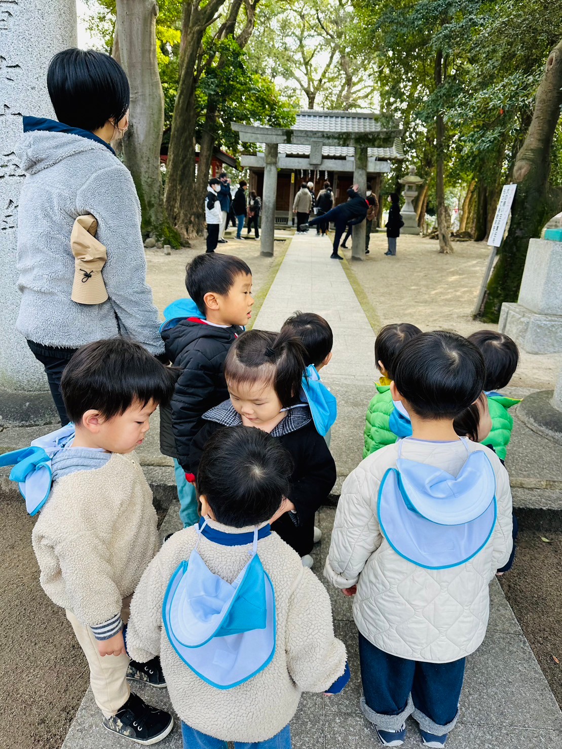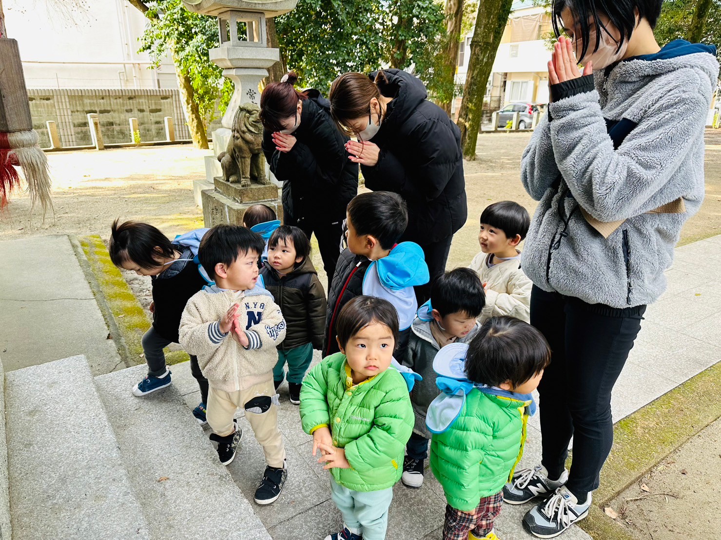 新年明けての保育園だったので、みんなで神社でお参りをしてきました⛩️