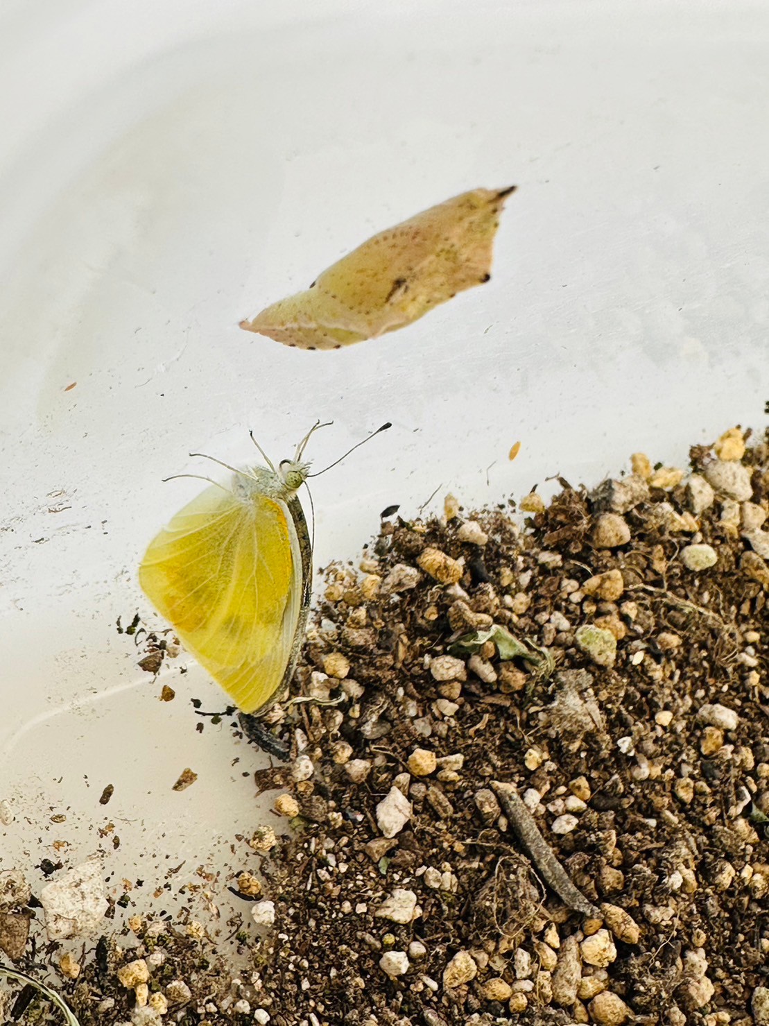大根と一緒にサナギになったアオムシさんも